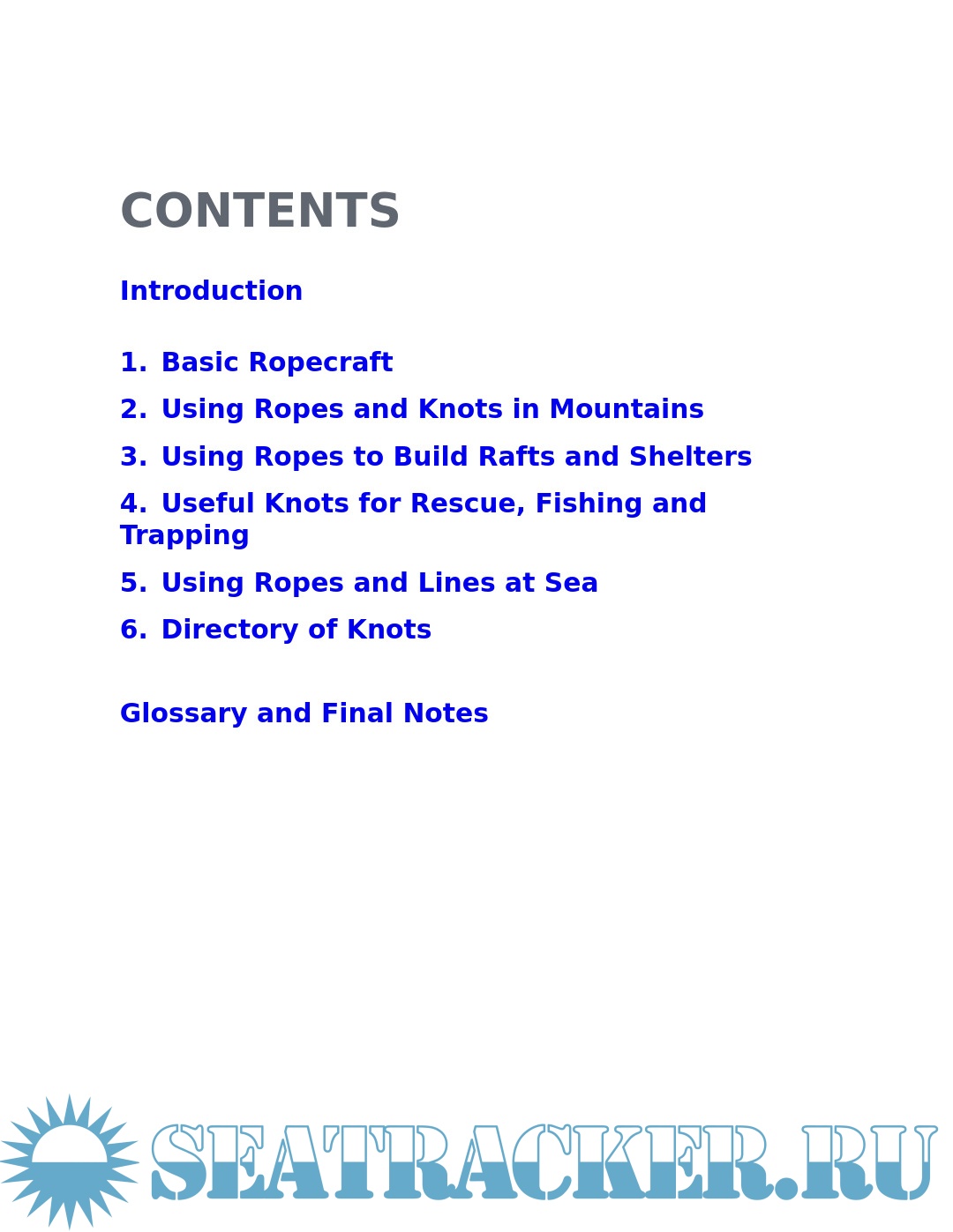 situation, how to make your own ropes out of animal tendons or plants, how to use your rope effectively when climbing, how to lash together a log raft.