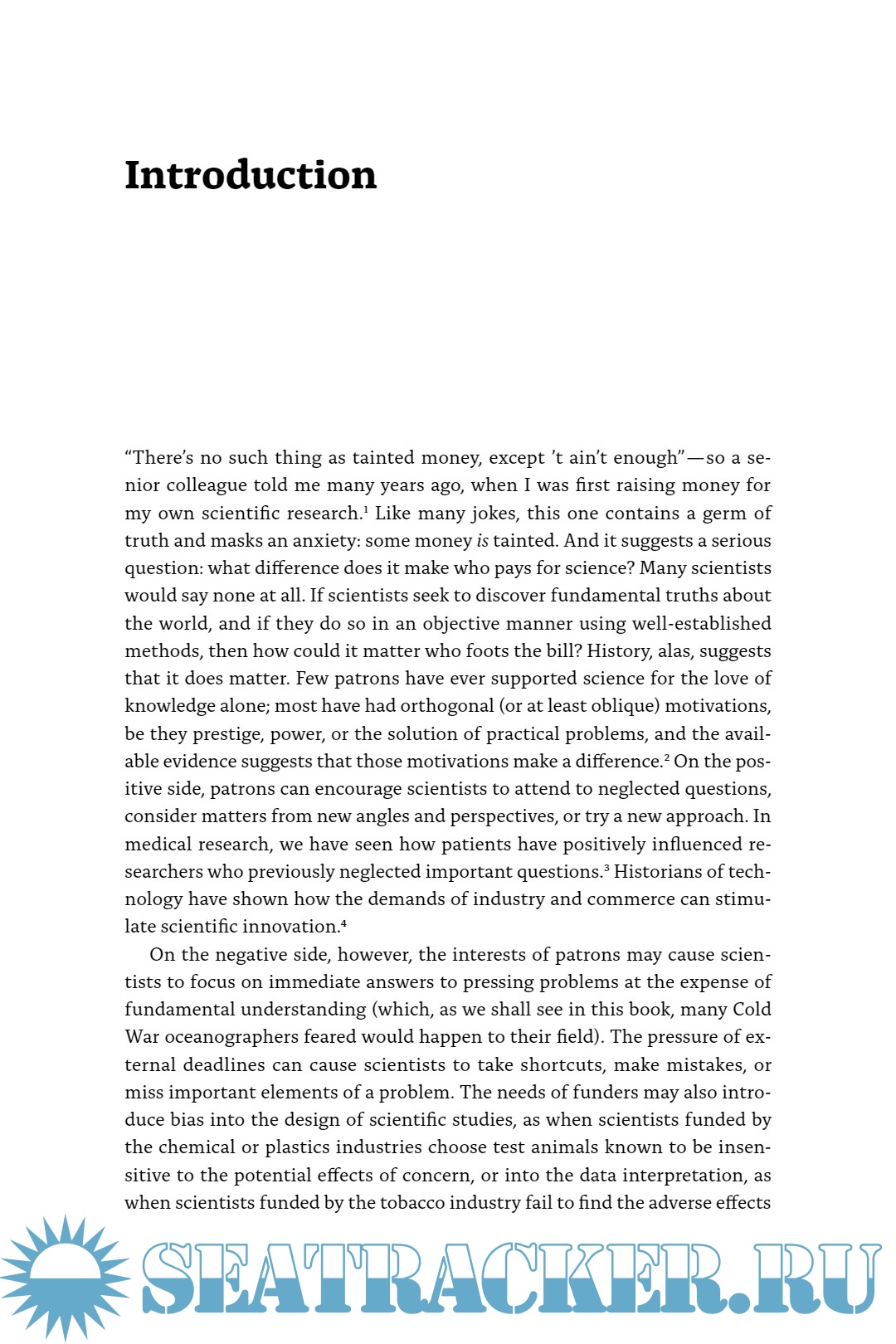 Year: 2022 Language: English Author: Naomi Oreskes Publisher: The University of Chicago Press ISBN: 978-0-226-73238-1, 978-0-226-82400-0, 978-0-226-73241-1, 9780226732411 Format: PDF Quality: eBook Pages count: 749 Description: A vivid portrait of how Naval oversight shaped American oceanography, revealing what difference it makes who pays for science. What difference does it make who pays for science? Some might say none. If scientists seek to discover fundamental truths about the world, and they do so in an objective manner using well-established methods, then how could it matter who’s footing the bill? History, however, suggests otherwise. In science, as elsewhere, money is power. Tracing the recent history of oceanography, Naomi Oreskes discloses dramatic changes in American ocean science since the Cold War, uncovering how and why it changed. Much of it has to do with who pays.
