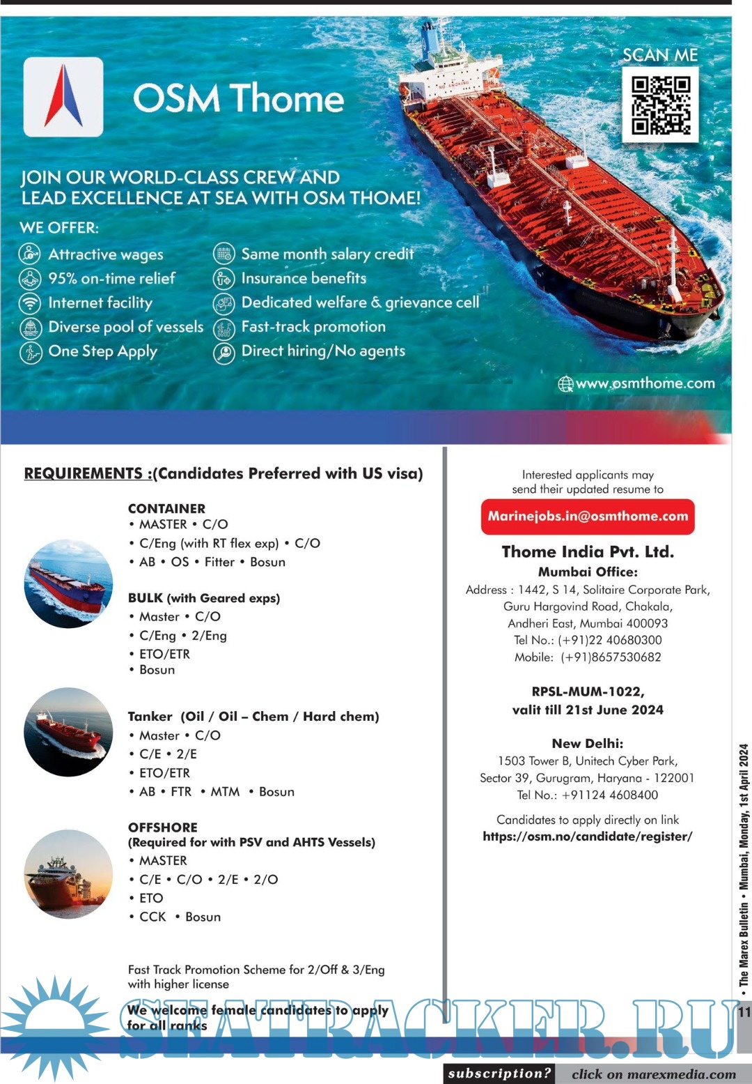 Description: The No 1 Twice weekly employment magazine for Seafarers.The Leading magazine for seafarers to locate Ship-board Employment opportunities, Training Institutes, Shipping companies.Online version: https://issuu.com/marexmediapvtltd Contents