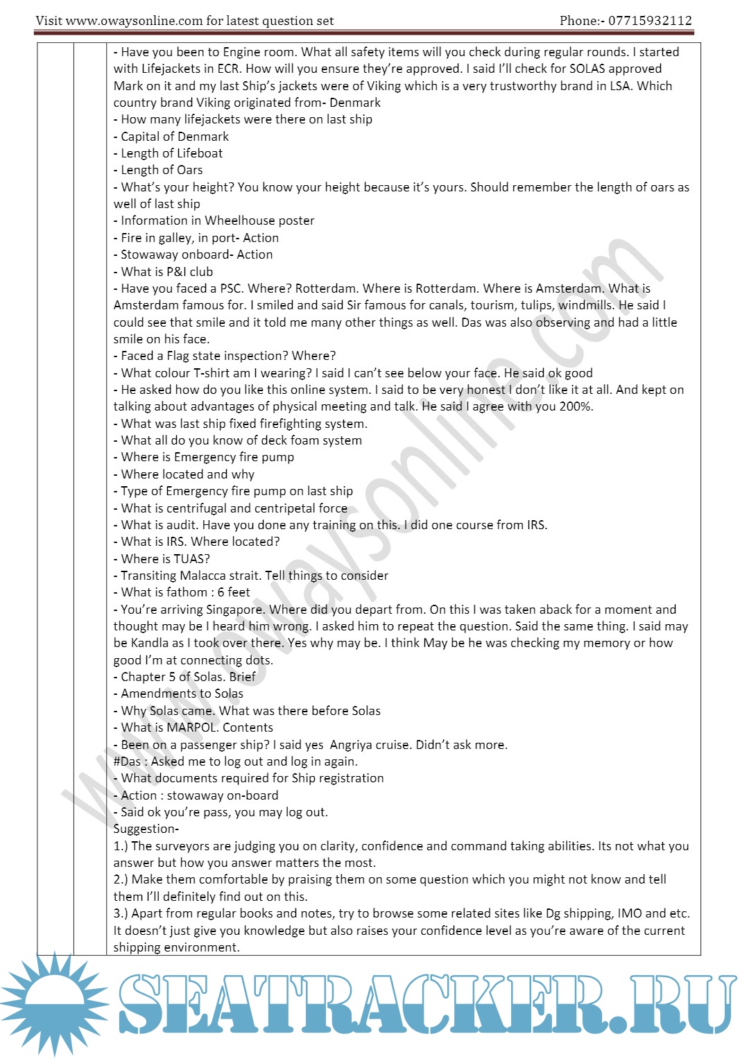 Orals Question Bank (February 2024) for ASM (Advanced Shipboard Management) / Master's…