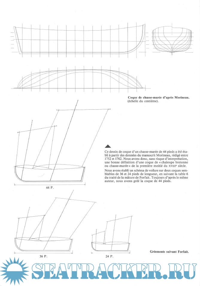 Люгер "Le Coureur" 1776 (чертежи) - Jean Boudriot, Hubert Berti [1985, JPEG]