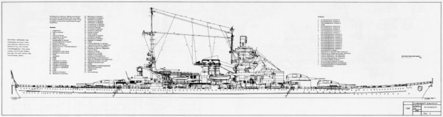 The drawings are where this book excels, which have apparently been adapted from the construction plans. There are side and top views of the ship as it was initially commissioned, the 1939 refit, and the proposed 1942 refit. There are B&W plates for the different color schemes used on the ship (which doesn't matter much as the ship was usually covered in a black/grey/white scheme much of its life.) The best feature-in my opinion at least--were the drawings of the hull and superstructure, deck by deck and frontal section at major frames, all featuring annotations in English. (I now know where the ships' surgeon was berthed, among other details.) This last point is uncommon for any volume on naval vessels outside the "Anatomy of the Ship" series, and this book may possibly be the closest analog that will be created for this ship.