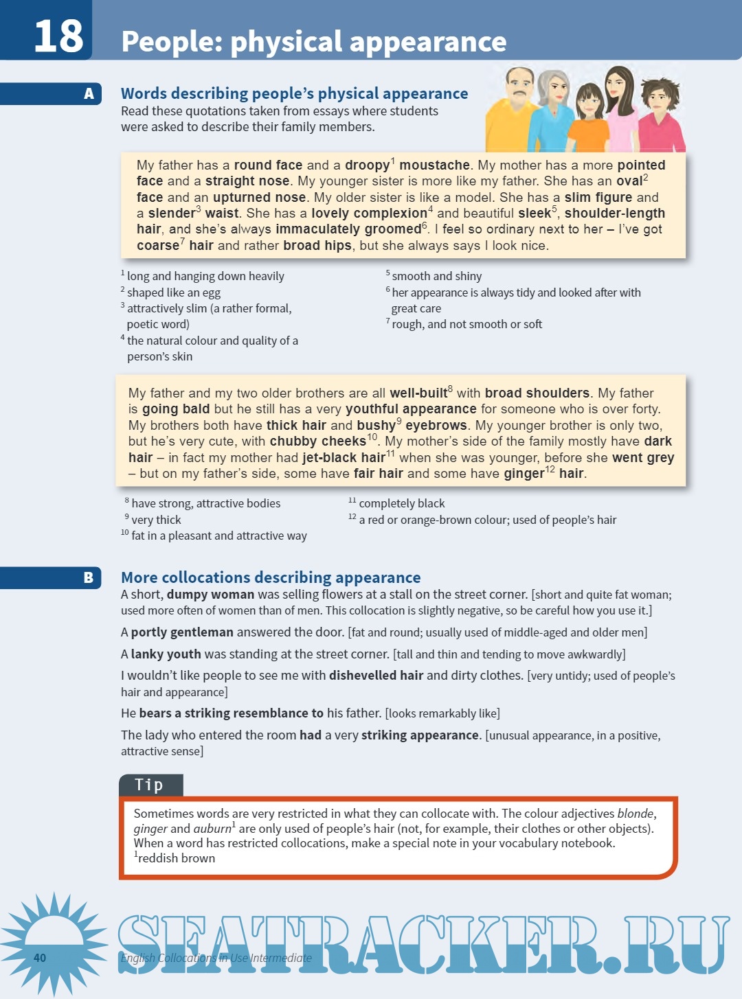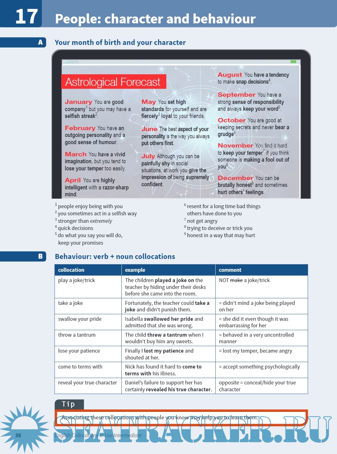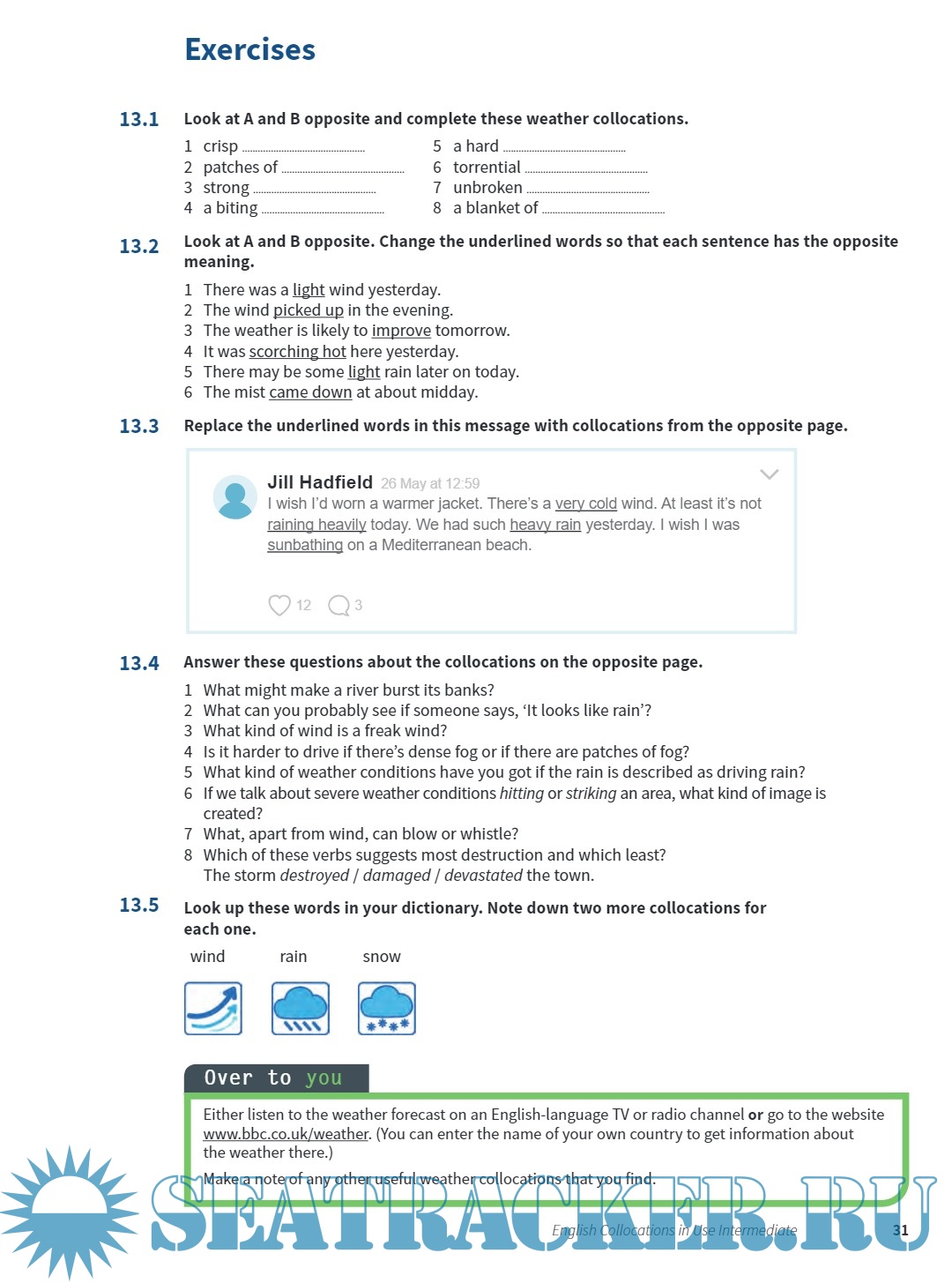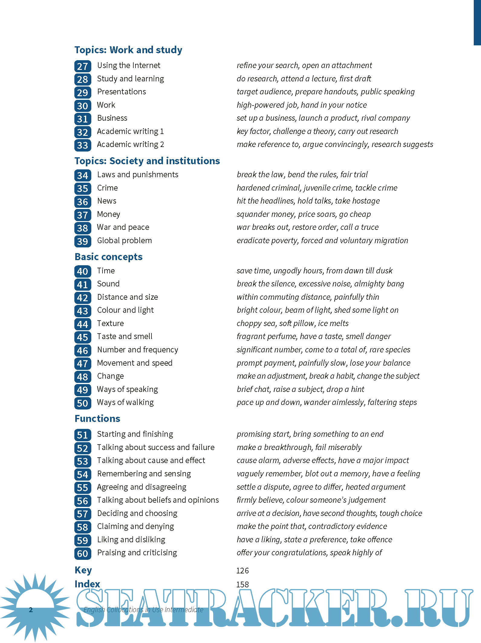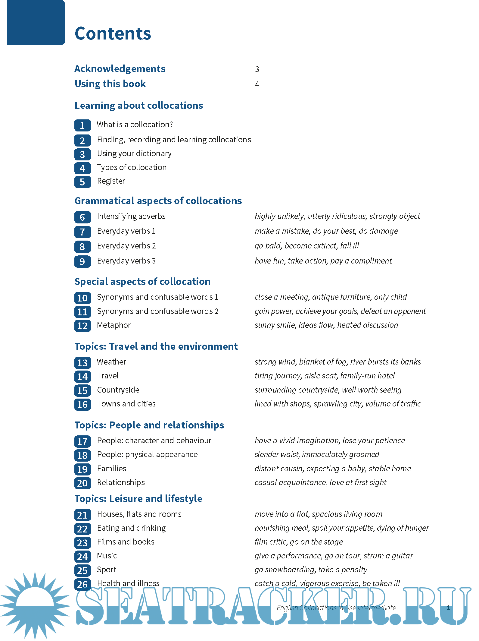 Year: 2017 Language: English Author: Michael McCarthy, Felicity O'Dell Genre: Textbook Publisher: Cambridge University Press Edition: Second ISBN: 978-1-31-66297-58 Format: PDF Quality: eBook Pages count: 388 Description: Improve your fluency and sound more natural in English. Collocations are combinations of words which frequently appear together for example, do and homework go together, as do make and mistakes; tall goes with man/woman and high with mountain. This books contain explanations and practice of English collocations for intermediate-level (B1 to B2) and advanced-level (C1) learners of English. Perfect for self-study activities. Learn collocations in context, with lots of different topics, including 'Using the Internet' and 'Presentations'. Be confident about what you are learning, thanks to Cambridge research into how English is really spoken and written, and get better at studying by yourself, with study tips and follow-up activities. This book is also perfect for preparing for Cambridge exams and IELTS, which often test knowledge of collocations.