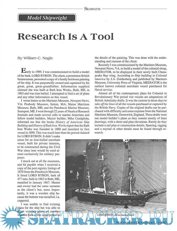 Year: 1990 Language: English Author: Scottie Dayton (Editor) Genre: Periodical (magazine) Format: JPEG Quality: Scanned pages Pages count: 76 Description: Seaway is the home port for Seaways Ships in Scale magazine, the leading workshop and research magazine for the ship modeler. In the magazine we explore all levels of modeling experience, all types of ships, all kinds of models, all historical eras and all construction materials