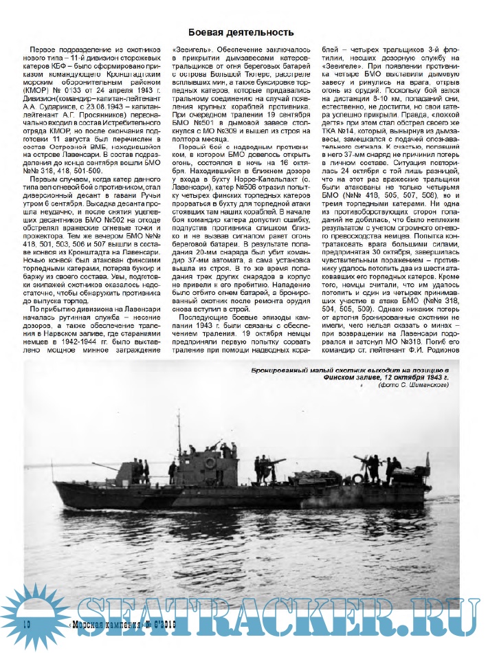 Работа кандидатов исторических наук Мирослава Эдуардовича Морозова (Москва) и Владимира Анатольевича Сутормина (г. Анапа, Краснодарский край) посвящена истории создания и боевому пути катеров типа БМО - бронированных малых охотников, строившихся в блокадном Ленинграде и принимавших активное участие в боевых действиях в Финском заливе в годы Великой Отечественной войны.