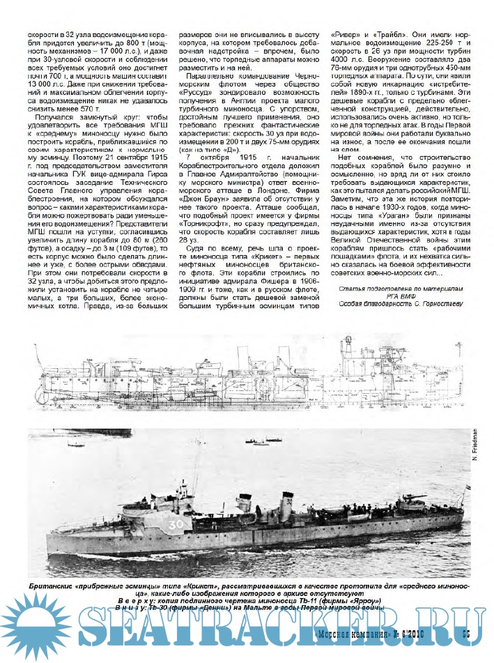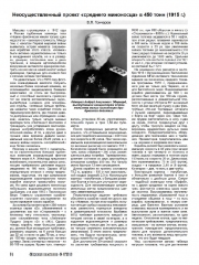 Владислав Львович Гончаров (Санкт-Петербург) на основе материалов РГА ВМФ раскрывает историю неосуществленного проекта 450-тонного миноносца прибрежного действия, разрабатывавшегося в годы Первой мировой войны.