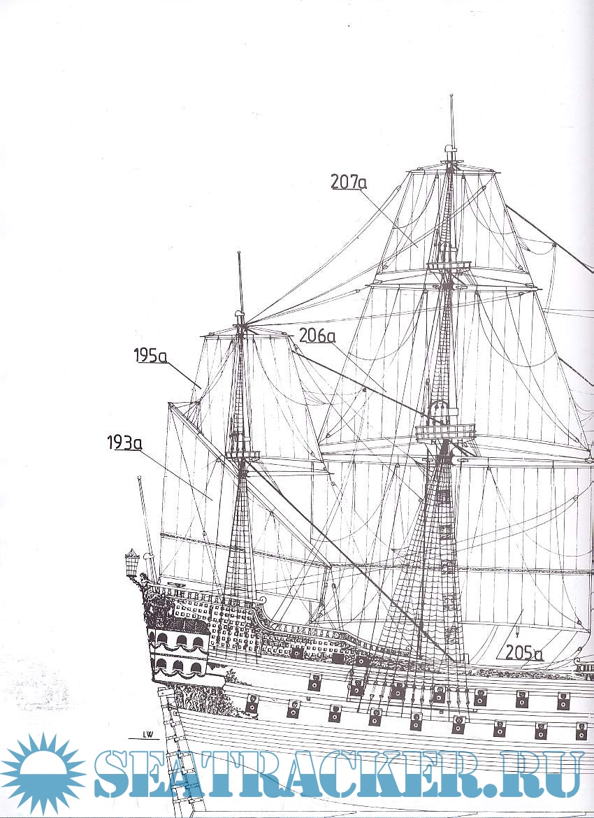 Описание: 47 листов цветных выкроек и инструкций для изготовления бумажной модели парусного корабля VASA (Швеция) в масштабе 1:200