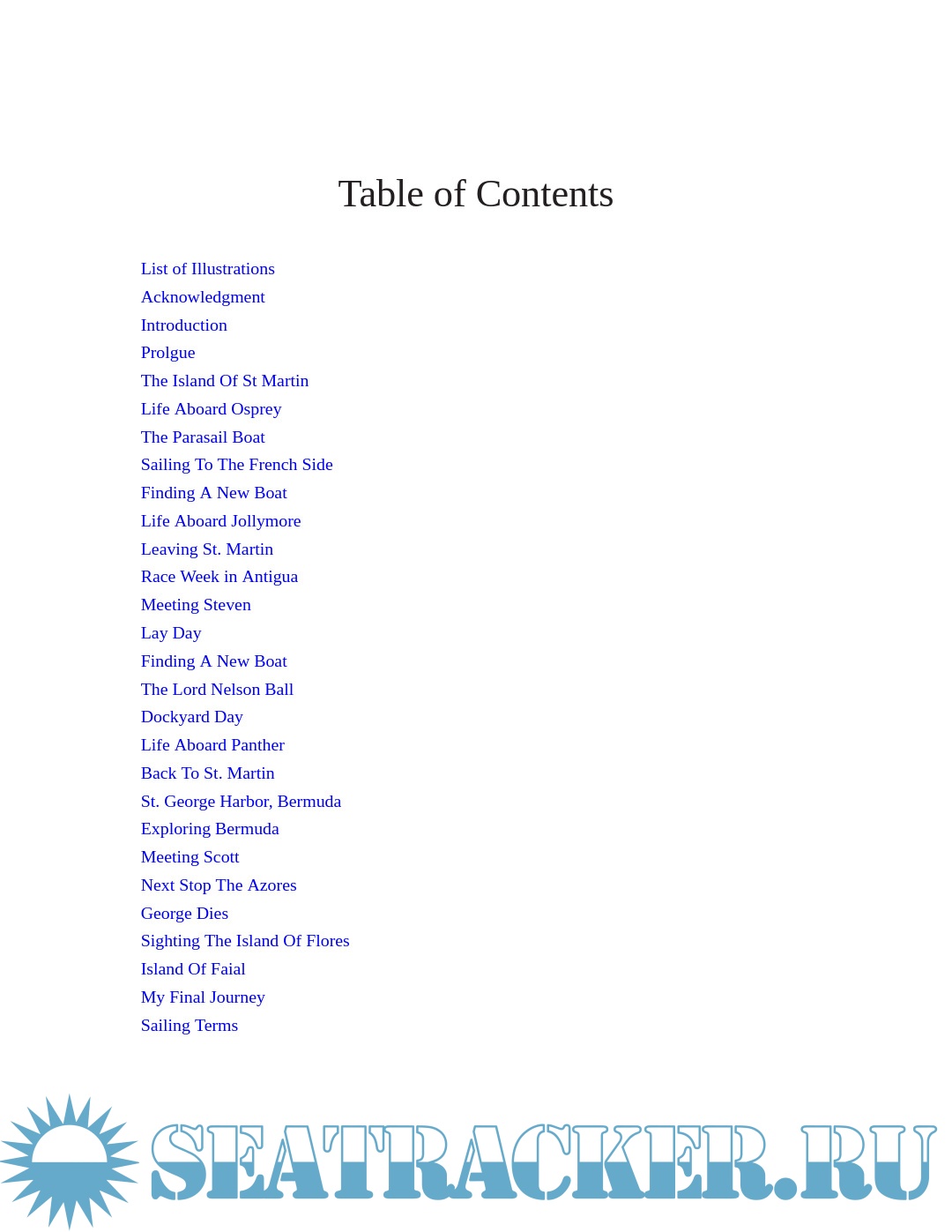 Year: 2016 Language: English Author: Waldron l. Genre: History Publisher: iUniverse ISBN: 978-1-5320-0359-2, 978-1-5320-0360-8 Format: PDF/EPUB Quality: eBook Pages count: 95 Description: A sometimes frightening, more often humorous tale of a grandmother hitchhiking across the Atlantic Ocean. A true story that reads more like an adventure novel. What starts out as a trip crewing on a sailboat destined for New Zealand ends up being a transformative journey where the author must learn to navigate waters and characters, a journey both physical and introspective.