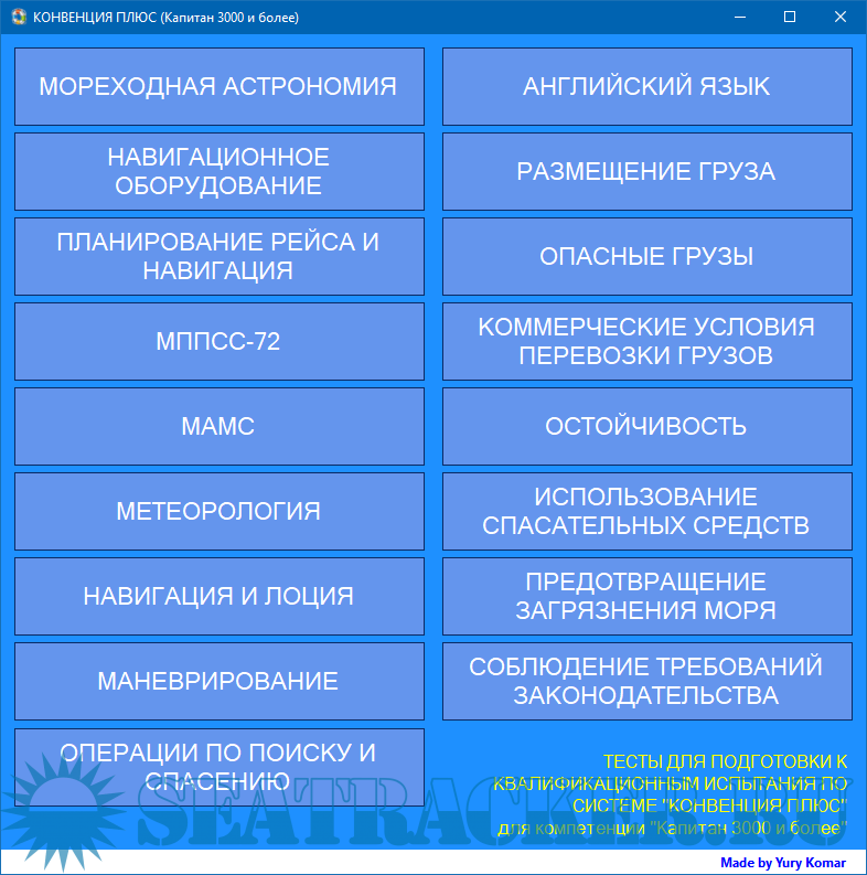 Описание: Бесплатная программа для онлайн подготовки к сдаче квалификационных испытаний в МАП Российской Федерации по компетенции Капитан судна 3000 и более.