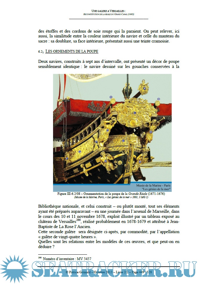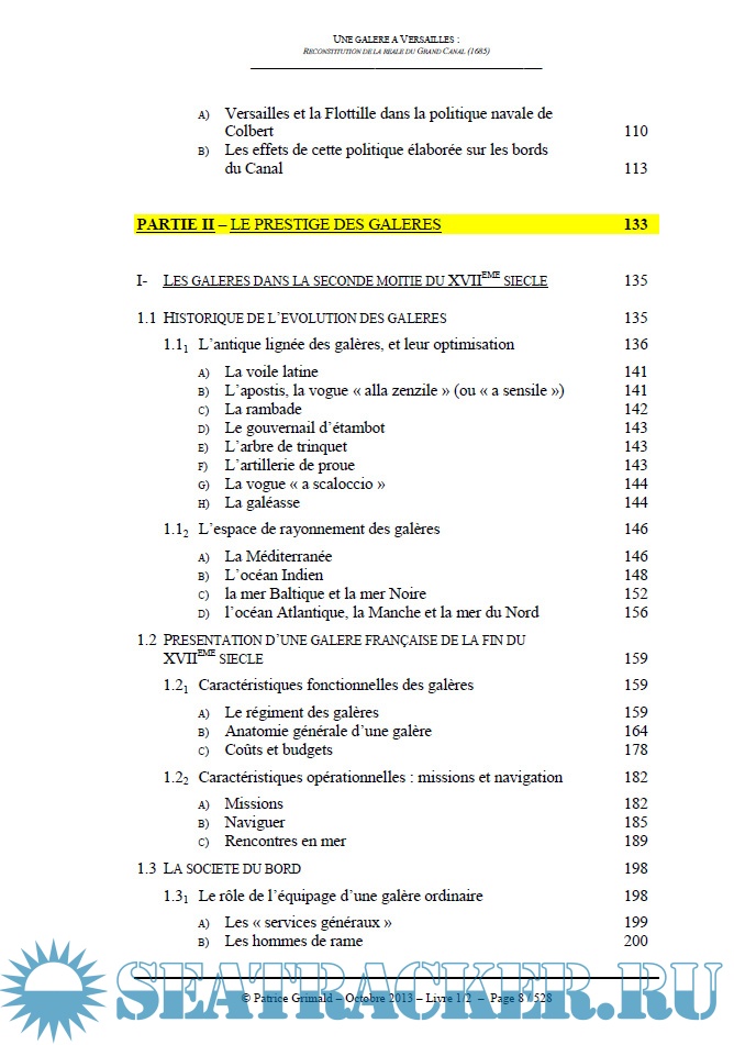 Description: Versailles au Grand Siècle était le foyer d'où rayonnait la gloire du Roi-Soleil. Toutes les institutions du Royaume, tout comme les Arts, les Sciences et les Lettres y jouaient un rôle en décor de fond des trois grandes scènes où se produisait la majesté royale : le château, les jardins et le Grand Canal. La Marine y participait, conformément à la politique de développement élaborée par Colbert. Le Grand Canal fut alors une annexe des arsenaux, un site d'exposition navale, où, à côté de bateaux dédiés aux loisirs nautiques appréciés par la Cour, des innovations, des prototypes et des bâtiments de combat furent présentés au Roi et concoururent à l'image de sa puissance. Au-dessus de cette flottille de Versailles régnait un bâtiment d'exception, superbe héritier de vingt cinq siècles d'histoire maritime des peuples de la Méditerranée : la galère réale du Grand Canal construite en 1685. A l'époque, la galère - parvenue à son apogée conceptuelle et technique - constituait toujours le navire emblématique de la domination navale du Roi. Bien que surclassée dans les batailles par l'artillerie des vaisseaux, elle conservait un prestige exceptionnel qui tenait notamment à sa magnificence et à son influence dans la communication politique et diplomatique de Louis XIV. Servir sur les galères, tant pour les officiers que pour les sous-officiers, les marins ou les soldats, conférait une haute dignité, très recherchée, sous l'égide de la Foi, de la Justice, de la grandeur et de la puissance du Roi. Une galère à Versailles, une réale, bien sûr, était ainsi dans l'ordre des choses. Elle y fut construite en 1685. Sa renaissance se situerait aujourd'hui dans la logique des restaurations menées depuis plus d'un siècle dans le château et son Domaine pour en retrouver l'apparence et l'atmosphère. Il n'en reste que deux panneaux décoratifs latéraux, et quelques rares informations d'archives. Rien qui renseigne directement sur les cotes de ce navire d'exception. Il a donc été nécessaire de reconstituer d'abord les méthodes de conception et de construction des galères. Il fallut ensuite adapter les résultats obtenus, parfois incompatibles entre eux, à la fonction du bâtiment, afin de parvenir à ressusciter son architecture générale dans laquelle convergent en cohérence toutes les sources et analyses historiques sur ce sujet.