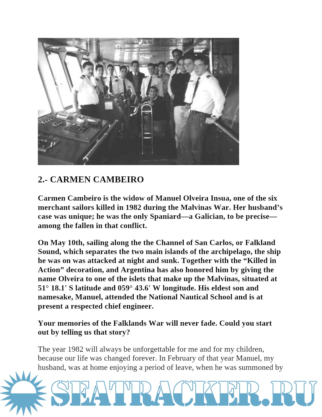 Mr. Vázquez is a radioelectronics officer in the Argentine merchant marine and professor at the National Nautical School (Naval University Institute of Argentina), where he has helped to educate many of the merchant marine officers, male and female, who now serve alongside him. He holds an M.A. in Investigation on Communications from the University of Vigo (Spain), and is presently completing his Ph.D. dissertation there on the history and organizational identity of the merchant marine. He is the author of 21 books published in Argentina and Spain.