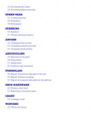 Description: Simple Boat Maintenance concentrates on the 67 most common boat maintenance jobs. Each is rated for difficulty on a scale of 1-5 and is explained in simple steps with lots of photos and diagrams. No special tools are required and no skill is assumed. Take this book in one hand, a spanner in the other and set to work. Learn how to: solve most engine problems; look after the gas, water, fuel and electrical systems; service pumps, winches, windlasses & sterngear; repair cracks & holes in fibreglass; find & cure leaks.