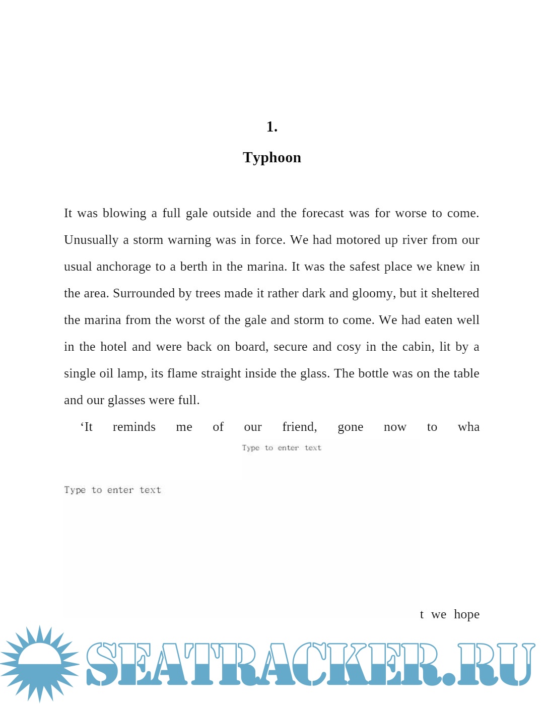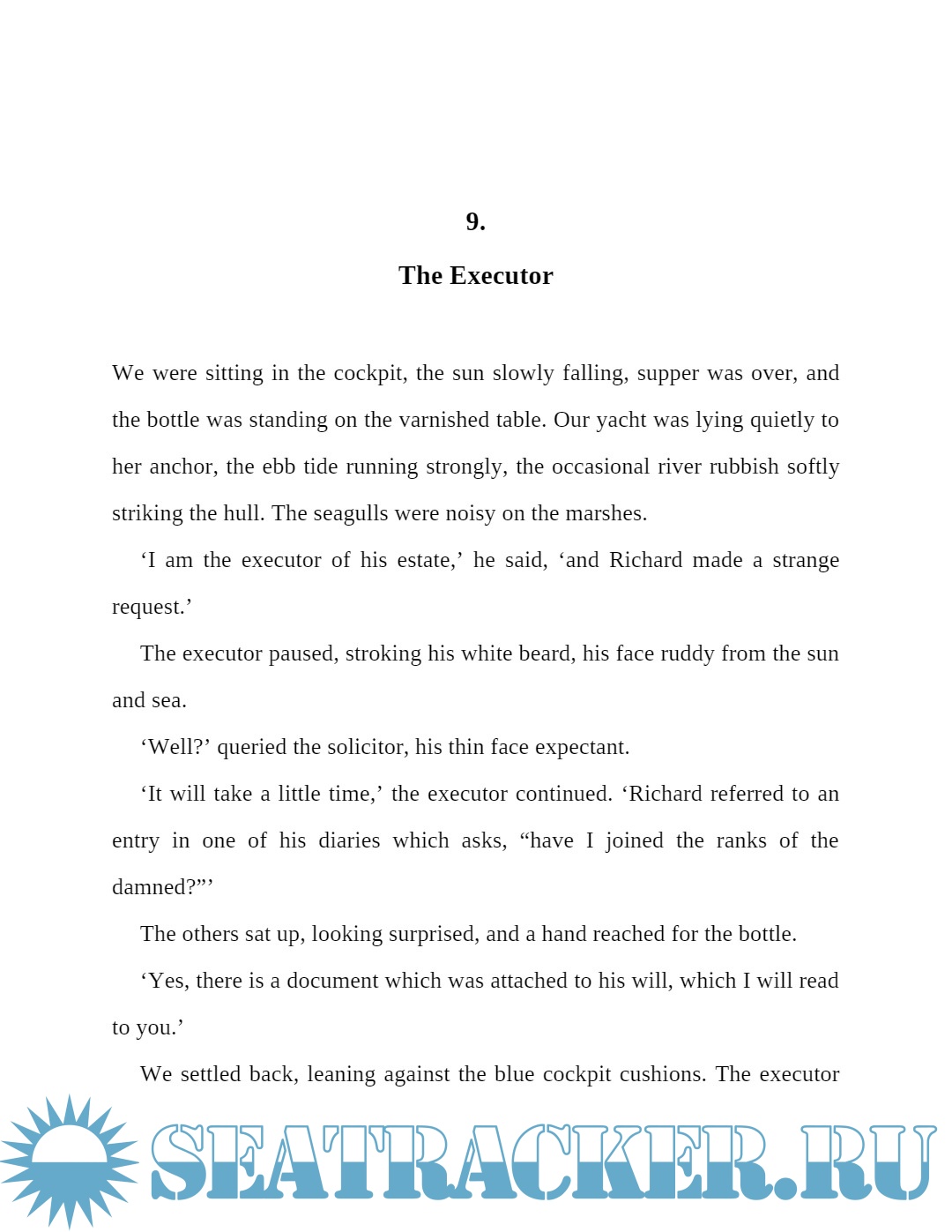 Description: A mariner, a banker, and a lawyer gather together to discuss their late friend Richard, and reflect on their seafaring experiences.