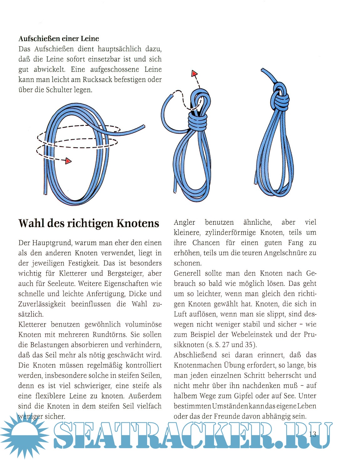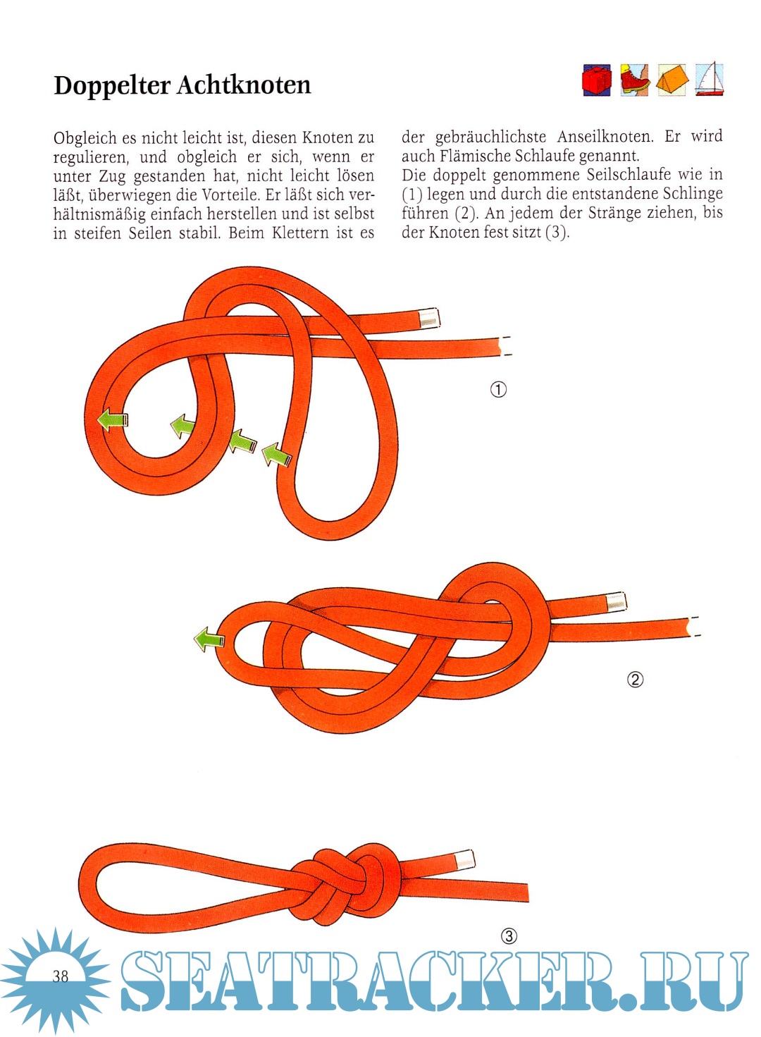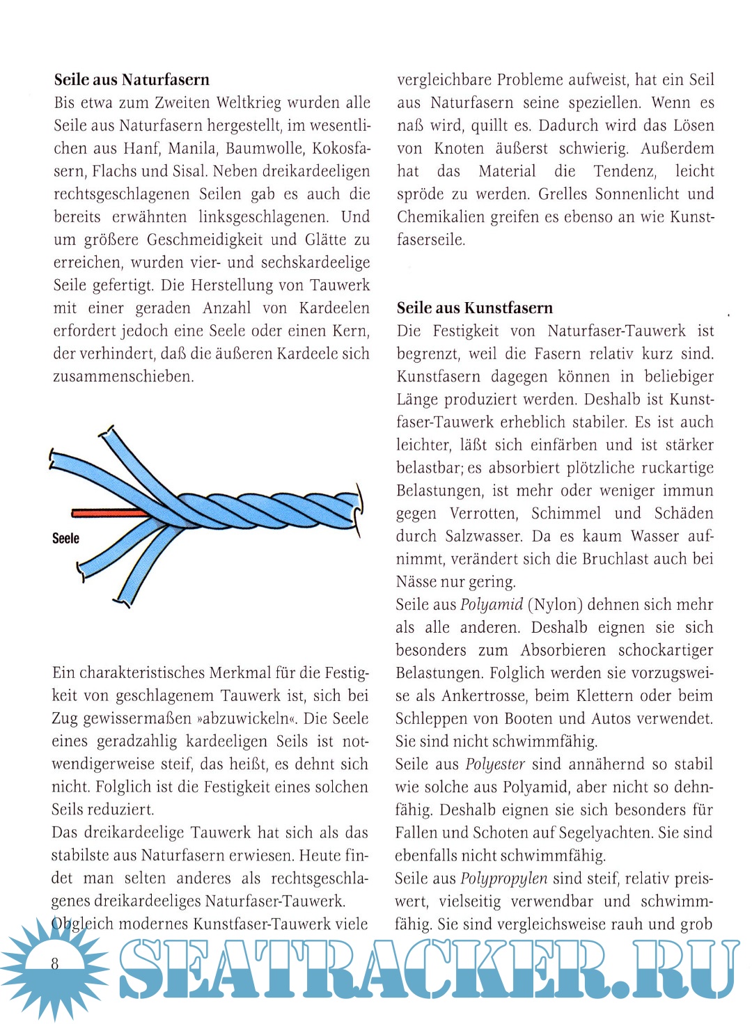 Year: 2008 Language: German Author: Owen P. Genre: Manual ISBN: 978-3-7688-0976-4 Format: PDF Quality: eBook Pages count: 82 Description: Der richtige Knoten für den richtigen Zweck – mehr als 50 Knoten sind in diesem Buch dargestellt, in farbigen Sequenzen un din sinnvollen Gruppen: Stopperknoten, Steke, Verbinden von Enden, Verkürzungssteke, feste Augen. Piktogramme verdeutlichen auf einen Blick, für wen der jeweilige Knoten geeignet ist, den Segler oder den Angler, den Bergsteiger oder Camper.