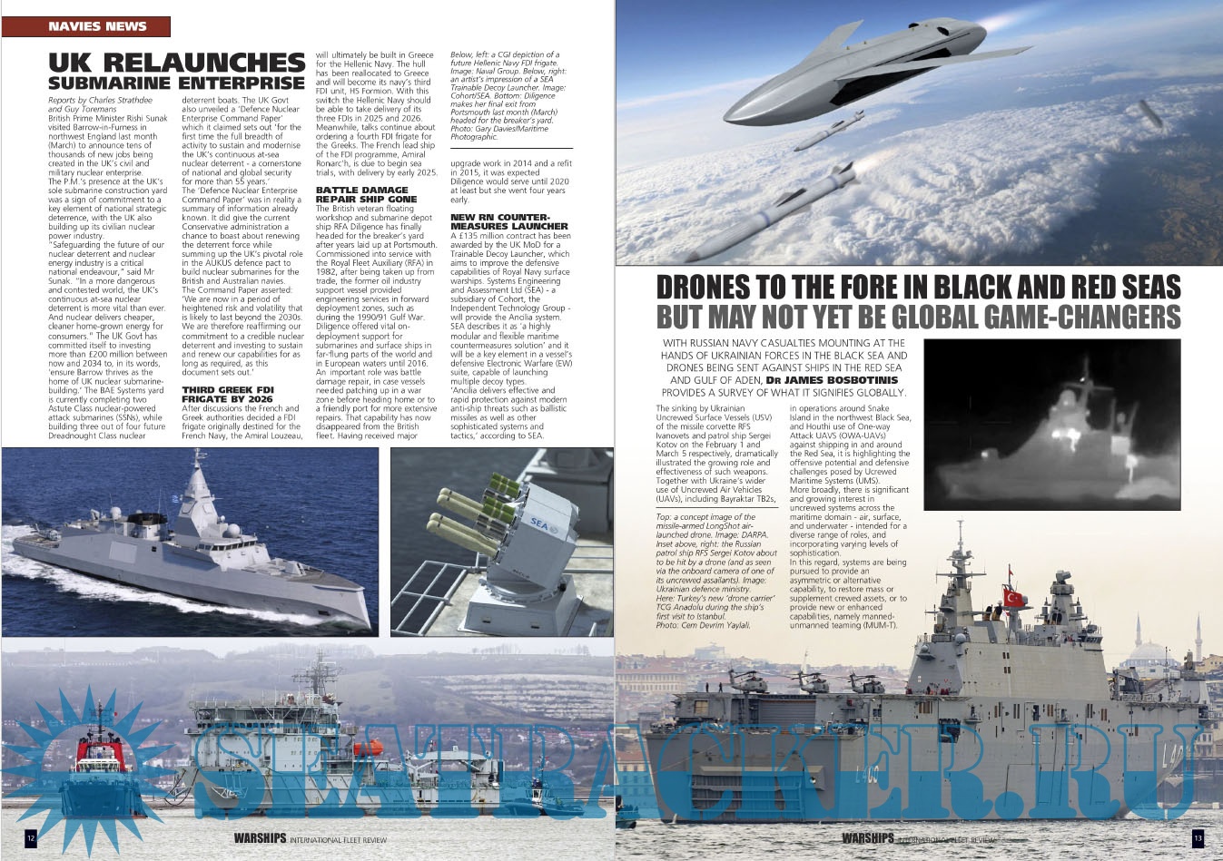 Description: Warships IFR puts the spotlight on the latest developments in the world’s navies. It covers current defence issues and has comments by leading analysts. The magazine regularly includes features on the Royal Navy and the US Navy in addition to incorporating news and features on all other navies across the globe. Warships IFR frequently carries in-depth articles on naval heritage.WARSHIPS International Fleet Review is published 12 times a year by Tandy Media Ltd who also publish Shipping Today & Yesterday (which provides news and features from the world of merchant shipping).