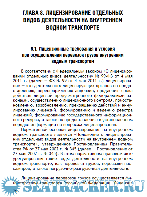 Глава 8. Лицензирование отдельных видов деятельности на внутреннем водном транспорте ...................76
