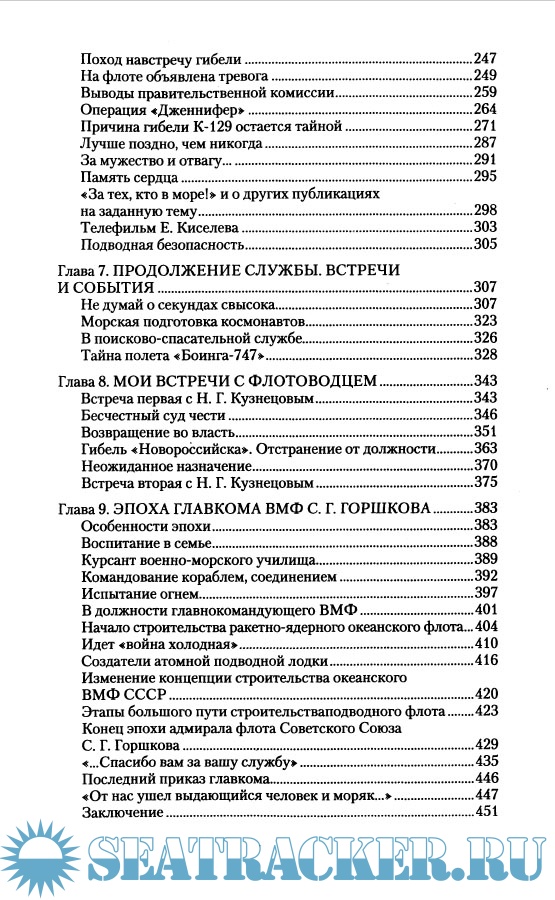 Содержание книги богато описанием событий, встреч с учеными, конструкторами, флотоводцами, первыми лицами государства, размышлениями о флотской службе, истории развития отечественного флота.