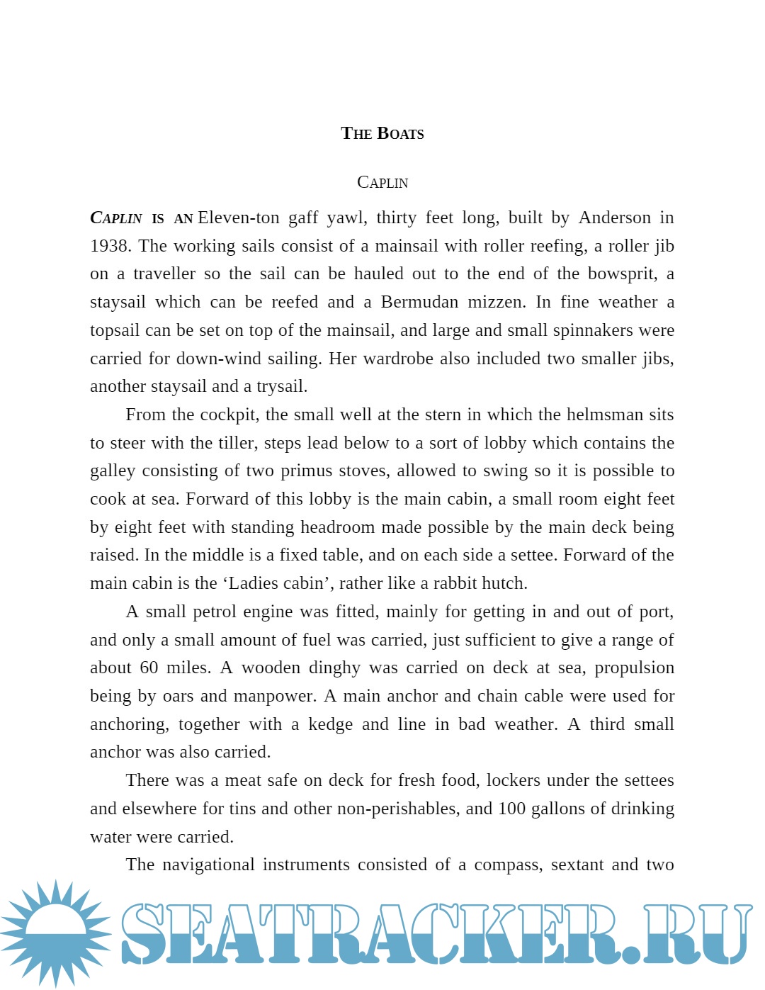 In 1938, Caplin, skippered by Commander R. D. Graham with his daughter Marguerite as mate, set out from England to sail around the world. Sixty years later, Cdr Graham’s grandson, Captain Ian Tew, bought Independent Freedom in New York and, with his aunt’s account of the voyage as a guide, sailed in Caplin’s wake.
