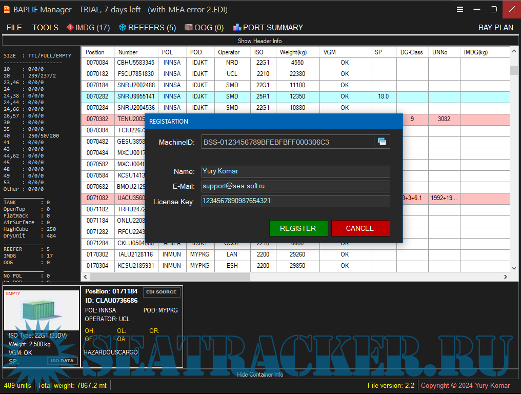 Description: Software for reading and editing BAPLIE files with cargo information for container ships.
