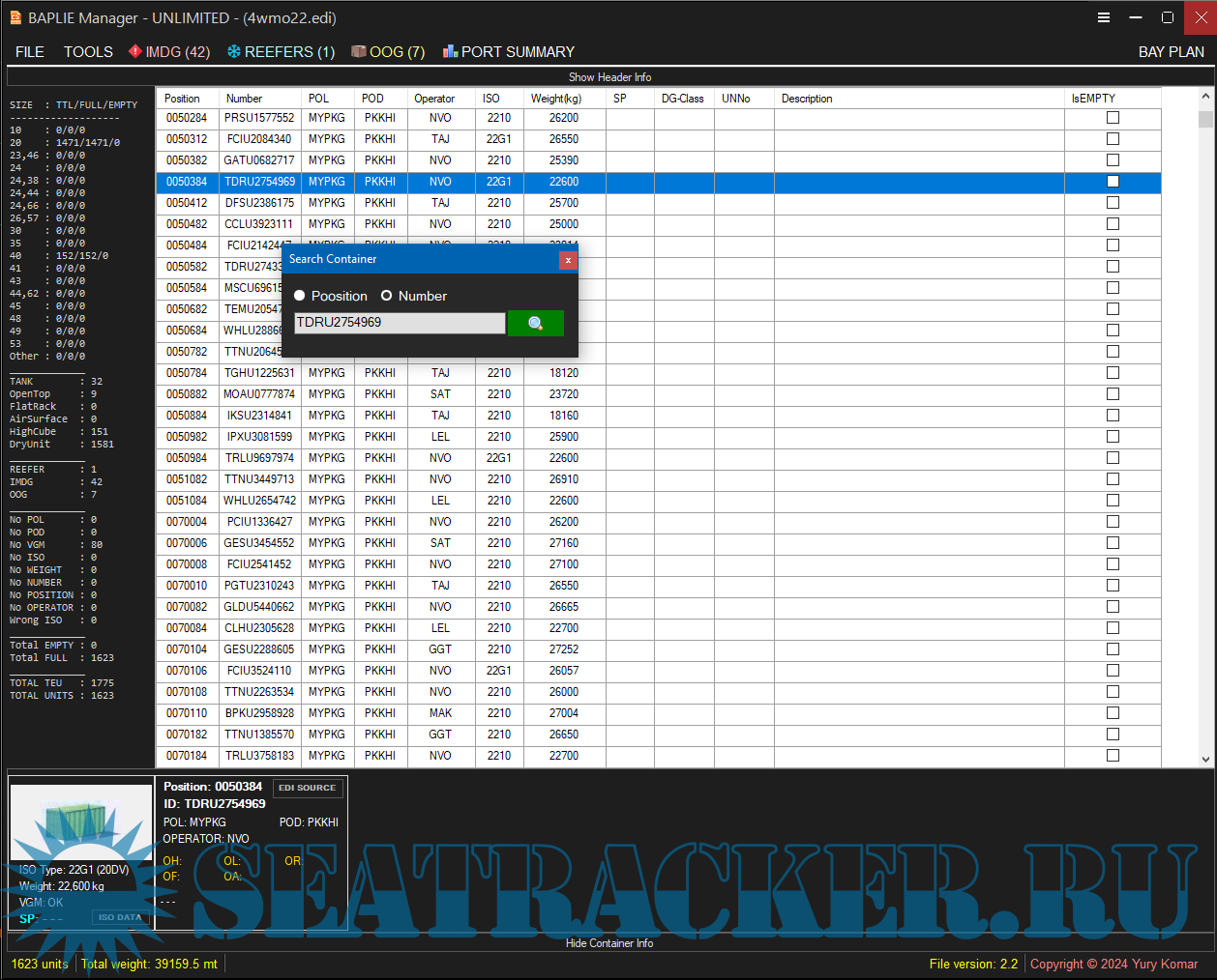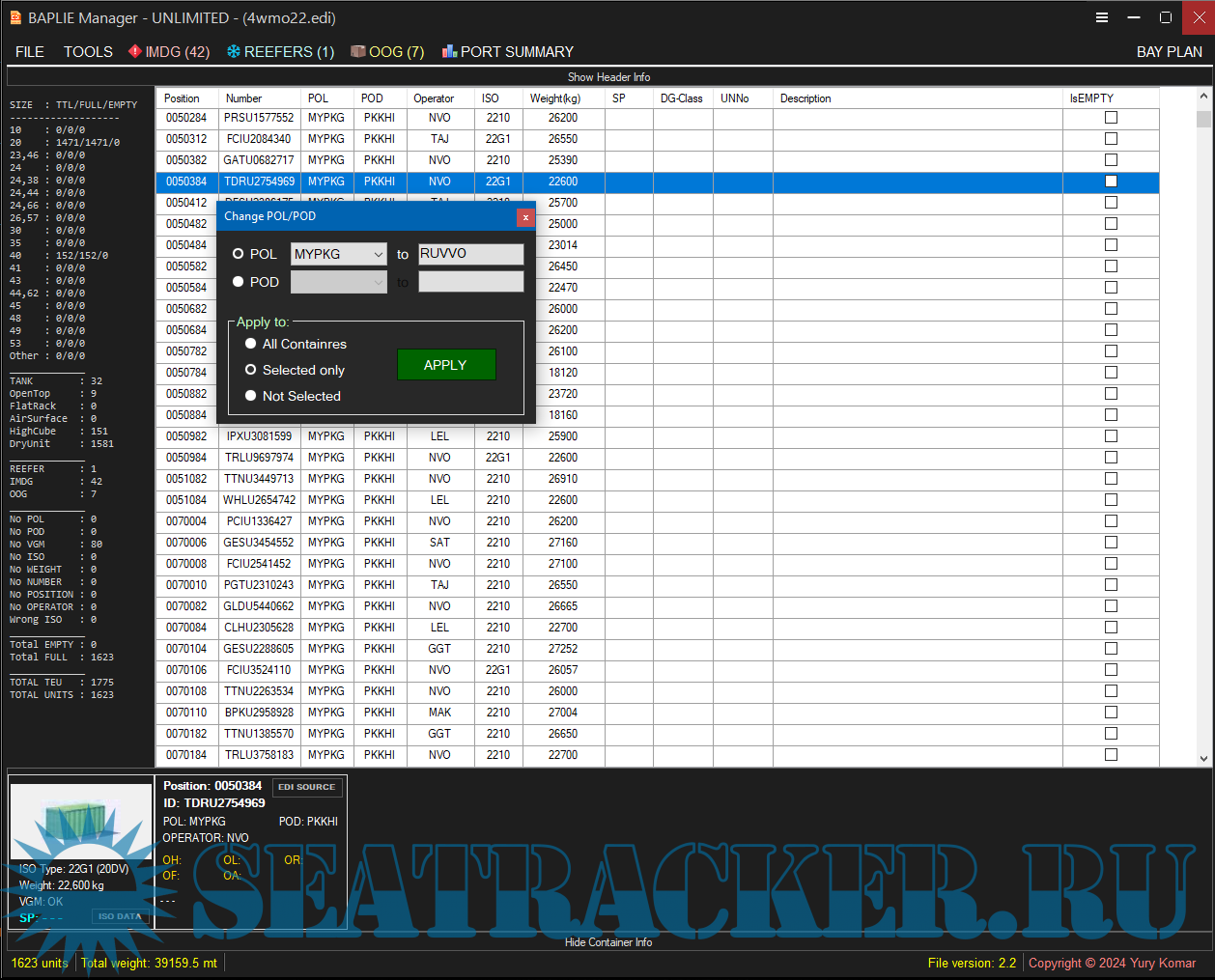 • Query by IMDG, REEFERS and OOG units