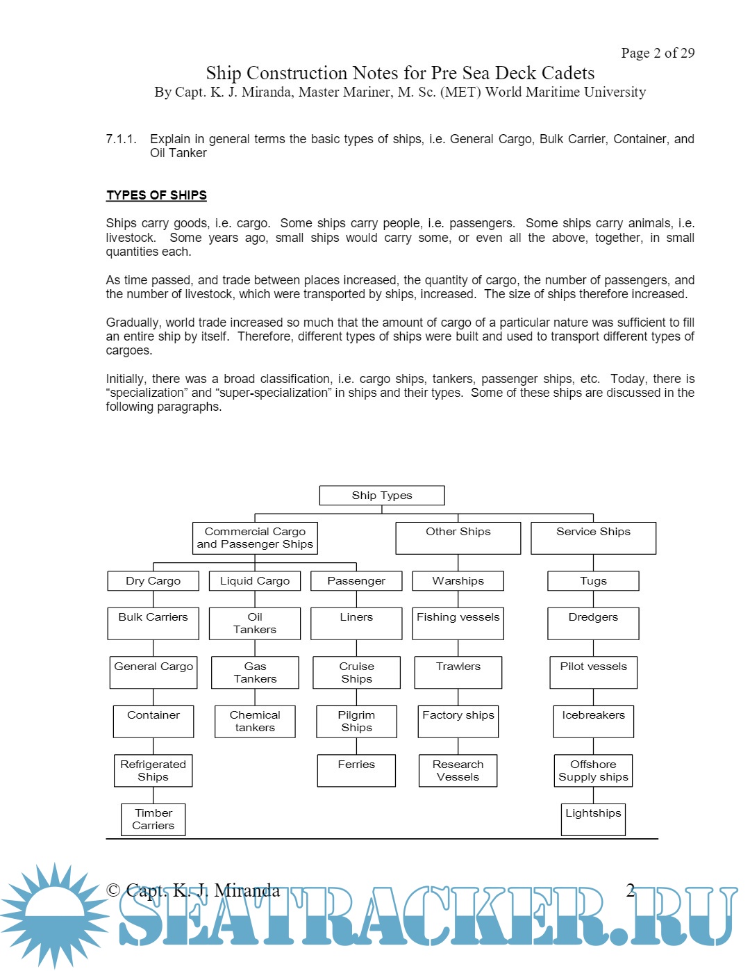 7.1.1 Explain in general terms the basic types of ships, i.e. General Cargo, Bulk Carrier, container, and Oil Tanker.