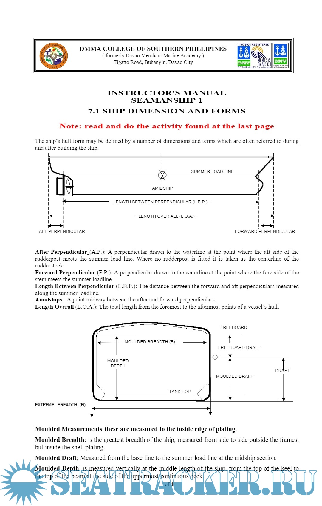 Description: INSTRUCTOR'S MANUAL SEAMANSHIP 1 - 7.1 SHIP DIMENSION AND FORMS Note: read and do the activity found at the last page