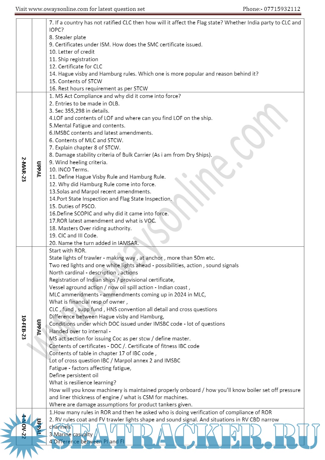 Description: Orals Question Bank for ASM (Advanced Shipboard Management) / Master's Mercantile Marine Department (MMD), India Examinations.