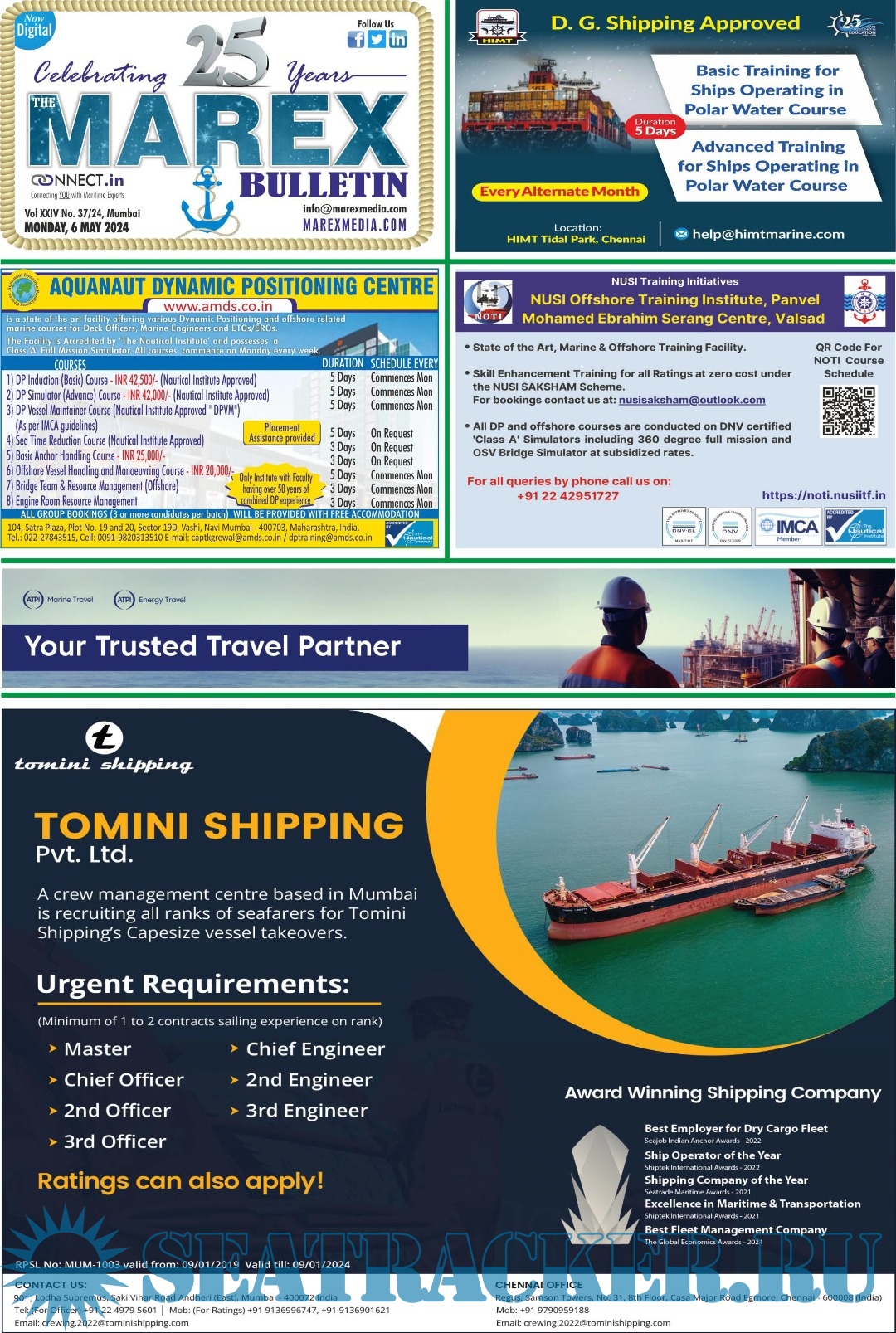 Description: The No 1 Twice weekly employment magazine for Seafarers. The Leading magazine for seafarers to locate Ship-board Employment opportunities, Training Institutes, Shipping companies.