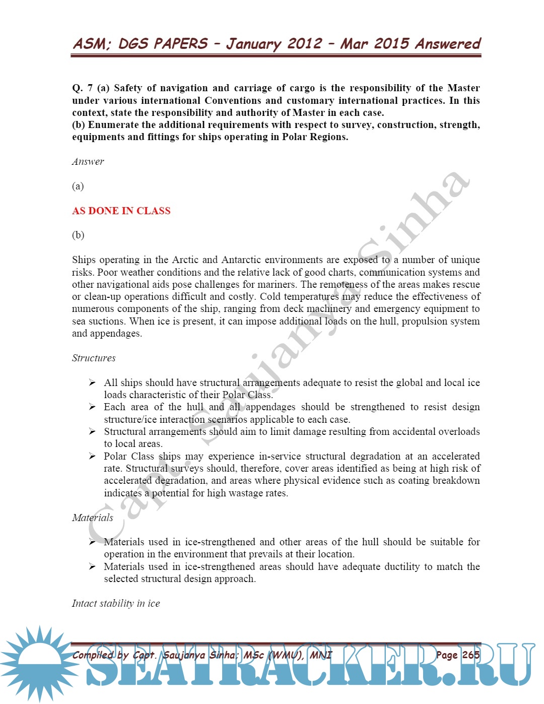 Description: Advanced Shipboard Management Master's examinations Question paper sets for Mercantile Marine Department (MMD), India solved by ARI Faculty Capt. Saujanya Sinha