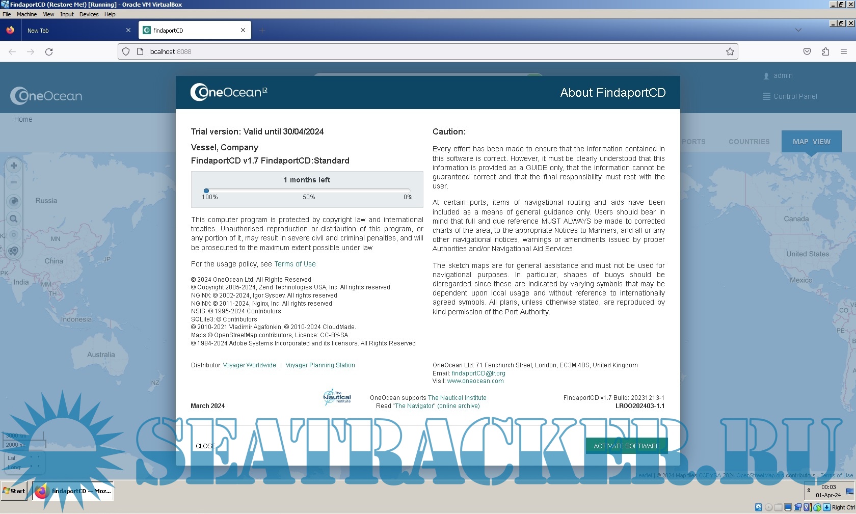 Year: 2024 Version: Findaport ver 1.7 (March, 2024) / VirtuarBox ver 17 Developer: Oracle and LR OneOcean Platform: Windows/MacOS 64-bit OS compatibility: yes System Requirements: In order to run VirtualBox on your machine, you need: Hardware: Reasonably powerful x86 hardware. Any recent Intel or AMD processor should do. OS: Presently, runs on Windows, Linux, macOS, and Solaris hosts Memory: at least 2 GB of RAM, recommended Hard disk: While VirtualBox itself is very lean (a typical installation will only need about 30 MB of hard disk space), the virtual machines will require fairly huge files on disk to represent their own hard disk storage. So, to install Windows 8, for example, you will need a file that will easily grow to several 10 GB in size. installed Host machine spec: OS: Windows 7 Pro (32-bit) activated Processors: 2 Core (- your guest) Hard Disk: 16 GbRAM: 2048 Mb (- your guest) Video: VBoxCVGA 256 Mb Localization: English Crack: Not needed Description: VirtualBox is a general-purpose full virtualizer for x86 hardware, targeted at server, desktop and embedded use. VirtualBox is a powerful x86 and AMD64/Intel64 virtualization product for enterprise as well as home use. Not only is VirtualBox an extremely feature rich, high performance product for enterprise customers. FindaportCD is Offline access to port information in a digital format. Ideal for vessels with restricted internet access, looking for access to port data digitally. Access to the latest port information is essential for mariners when planning and executing a port call and enabling safe and efficient access to marine facilities. Findaport.com is an online port information website that enables subscribers to access the maritime industry's most comprehensive port information available. It is owned and operated by OneOcean Group, leading providers of maritime navigation and compliance solutions. Information in database is researched and updated daily by a dedicated team of editors using only authenticated sources such as port authorities, agents, and operators. You can therefore be safe in the knowledge that you are accessing the most up-to-date information available to the maritime industry on the ports you visit. Discover in-depth information on port facilities around the world. You will find details about the cargo accepted and facilities and equipment available at terminals and even individual berths. Two editions of FindaportCD are available: - FindaportCD: Standard - access to all our port information irrespective of cargo type - FindaportCD: Tanker - tanker specific information onlyA trial is a lot of times the full completed A trial is a lot of times the full completed "game" whereas a demo may be a a part of a full "game" or may not represent the final state of the "game"! Plus installed on VirtualMachine: - Admiralty TotalTide ver 7.6.1.0 - PortToPort Desktop Marine Distance Tables ver 5.7.90.0 see Screenshots for more details