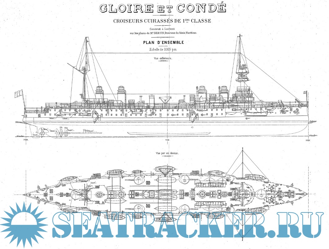 Архивные чертежи французского крейсера 1-го ранга GLOIRE 1900 год