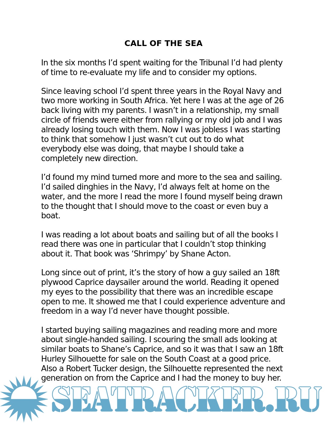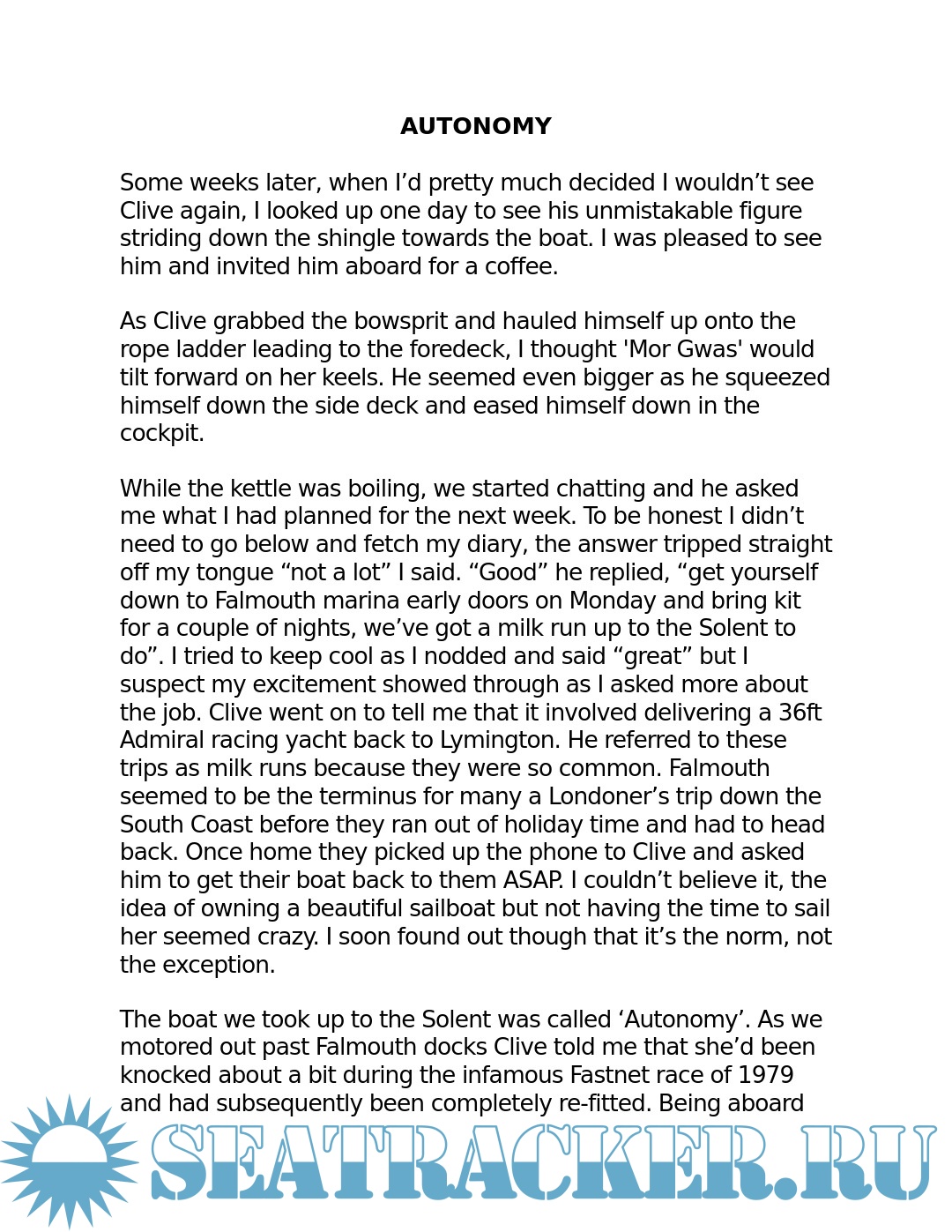 This is a book not just about sailing but life. It's about what happens at the very limits of physical emotional and mental capacity. Ultimately it's about how personal tragedy led to a life-changing discovery - The realisation that hidden deep inside of us all is the perseverance and passion needed for achieving long-term goals.