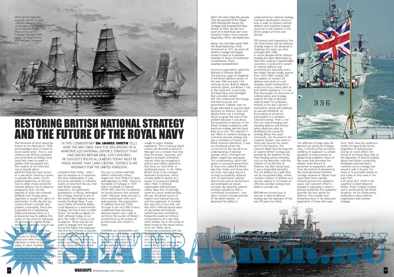 Description: Warships IFR puts the spotlight on the latest developments in the world’s navies. It covers current defence issues and has comments by leading analysts. The magazine regularly includes features on the Royal Navy and the US Navy in addition to incorporating news and features on all other navies across the globe. Warships IFR frequently carries in-depth articles on naval heritage.WARSHIPS International Fleet Review is published 12 times a year by Tandy Media Ltd who also publish Shipping Today & Yesterday (which provides news and features from the world of merchant shipping).