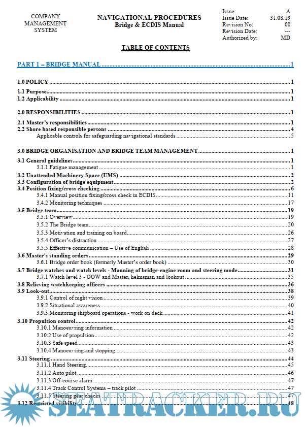 This manual is intended to provide information, procedures, instructions and precautions for the navigation