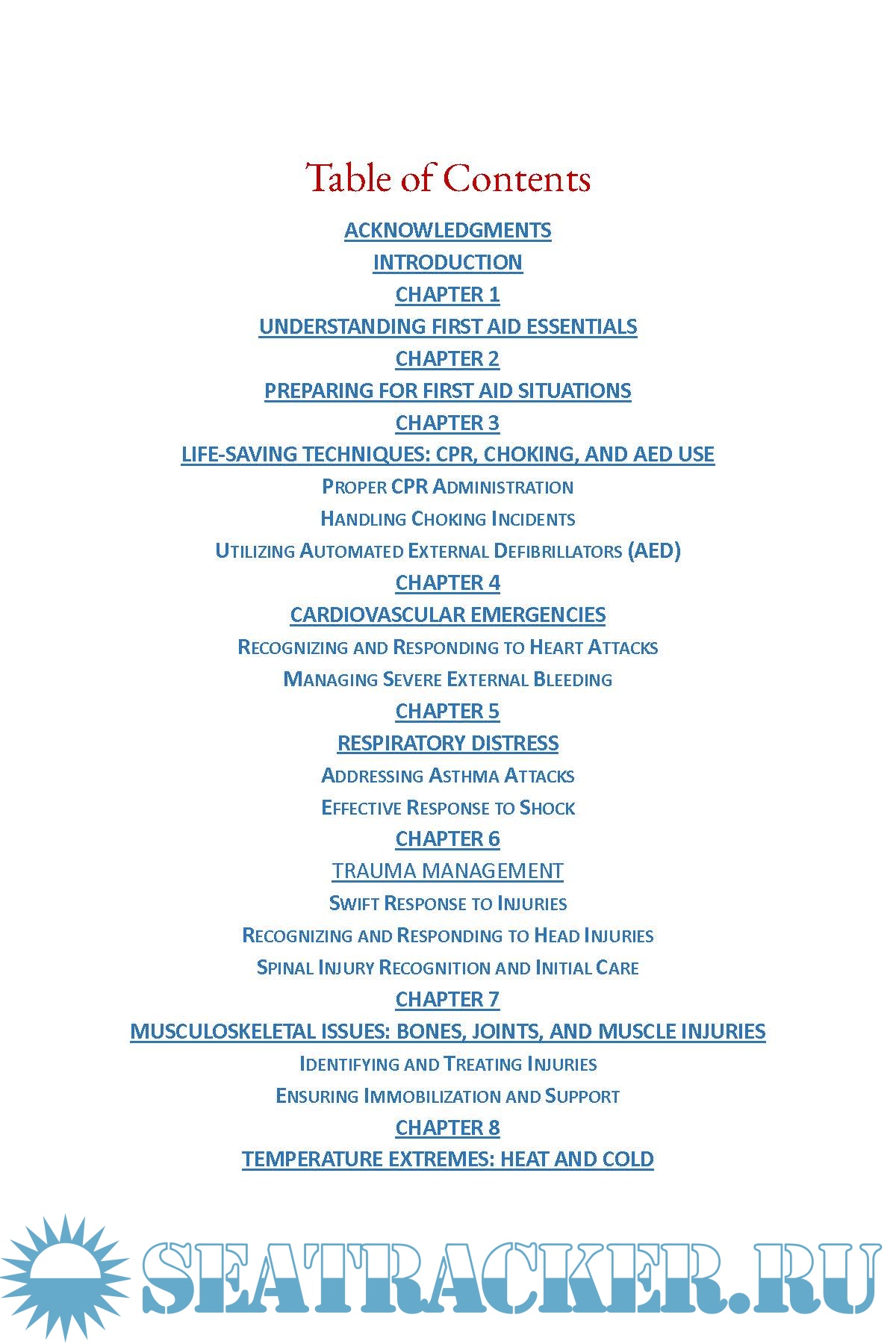 Life-saving procedures: CPR, AED, bleeding control, shock management, and more.