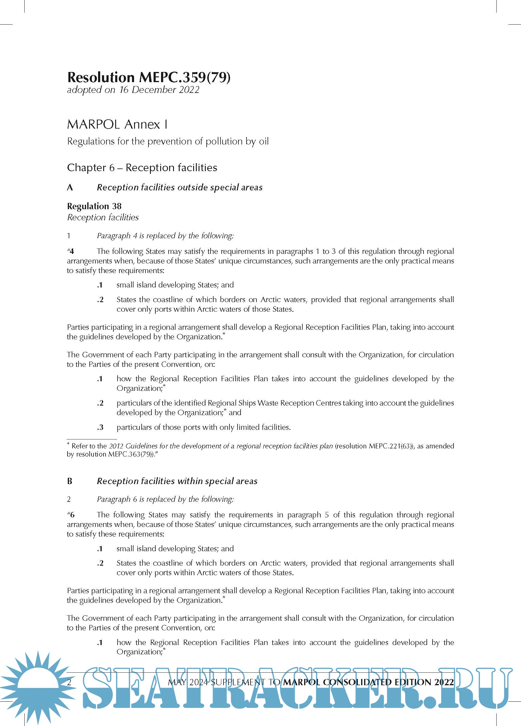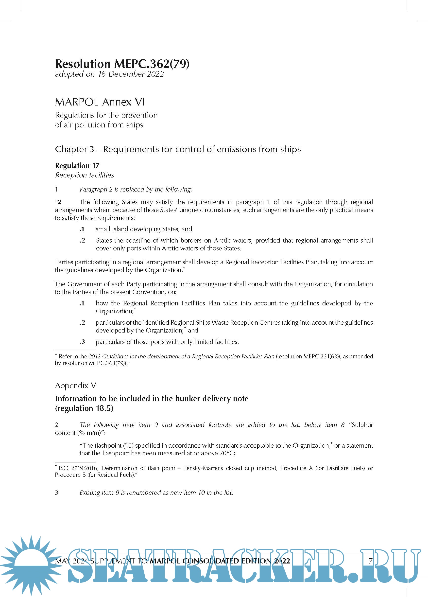 Amendments to MARPOL Consolidated Edition 2022, in chronological order of entry into force on 1 May 2024, were adopted by the Marine Environment Protection Committee (MEPC) at its seventy-ninth session.