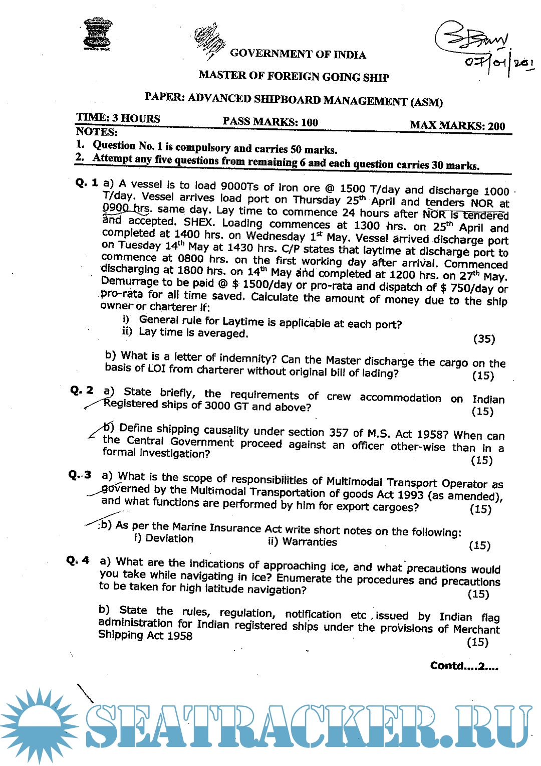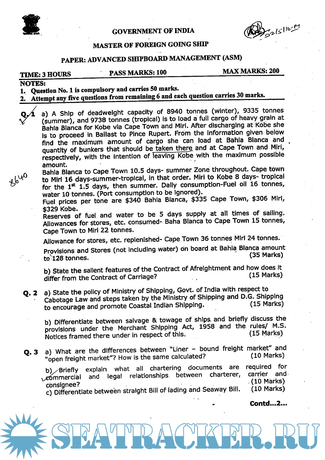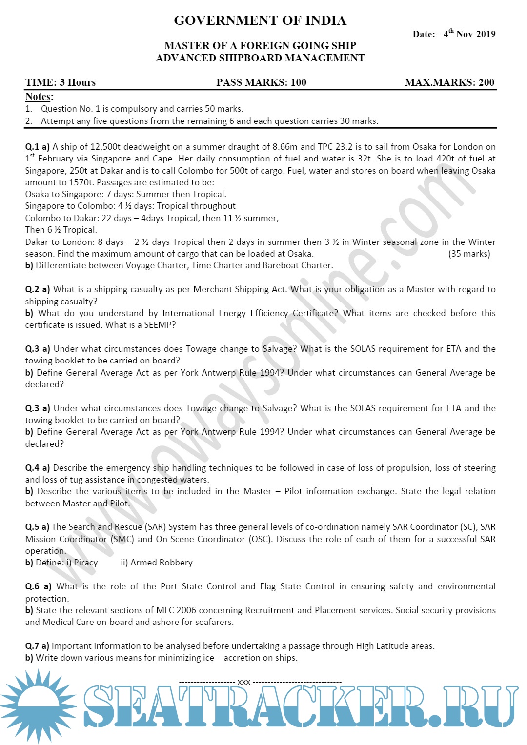 Master's examinations Question paper sets for Mercantile Marine Department (MMD), India.