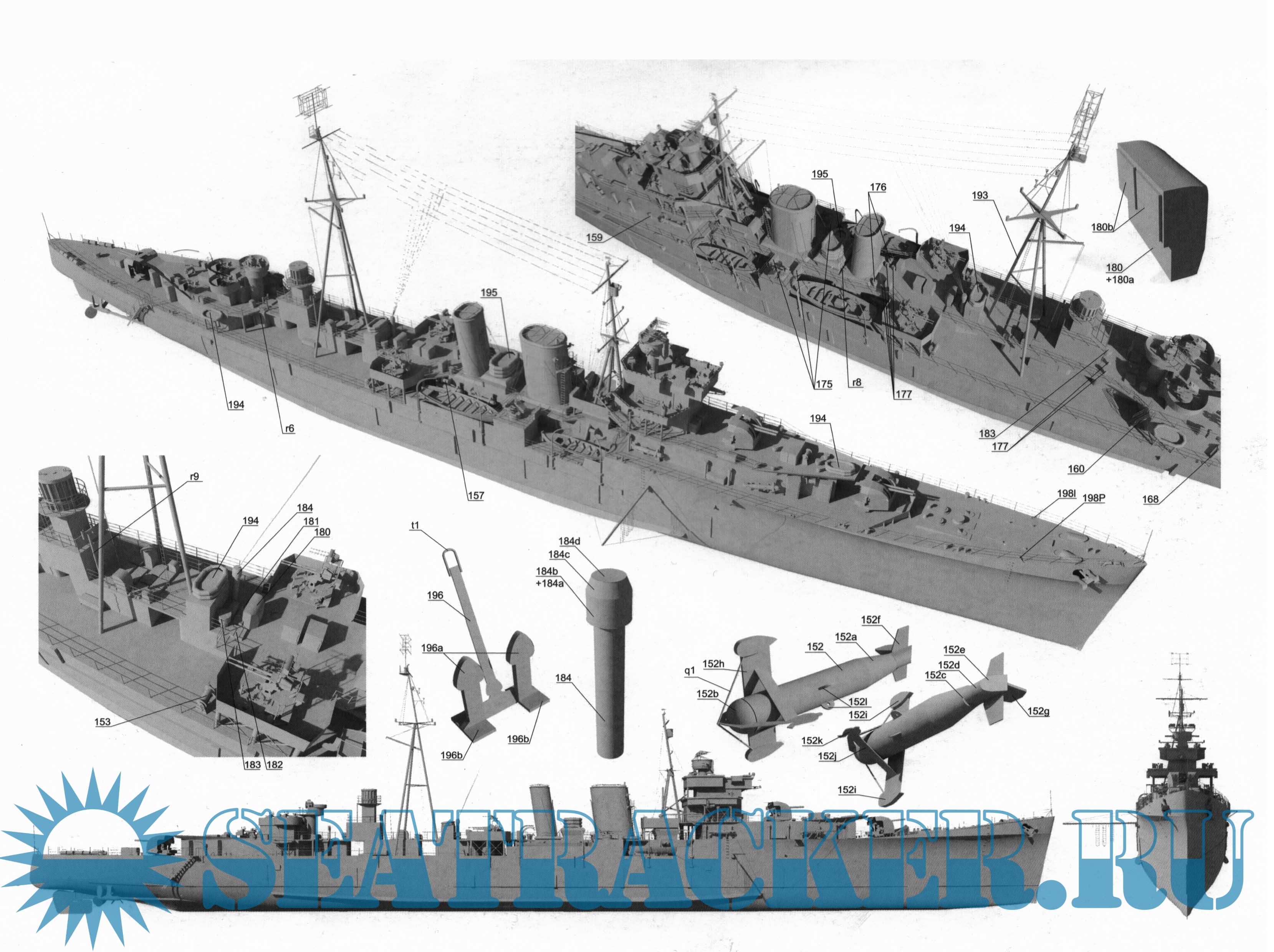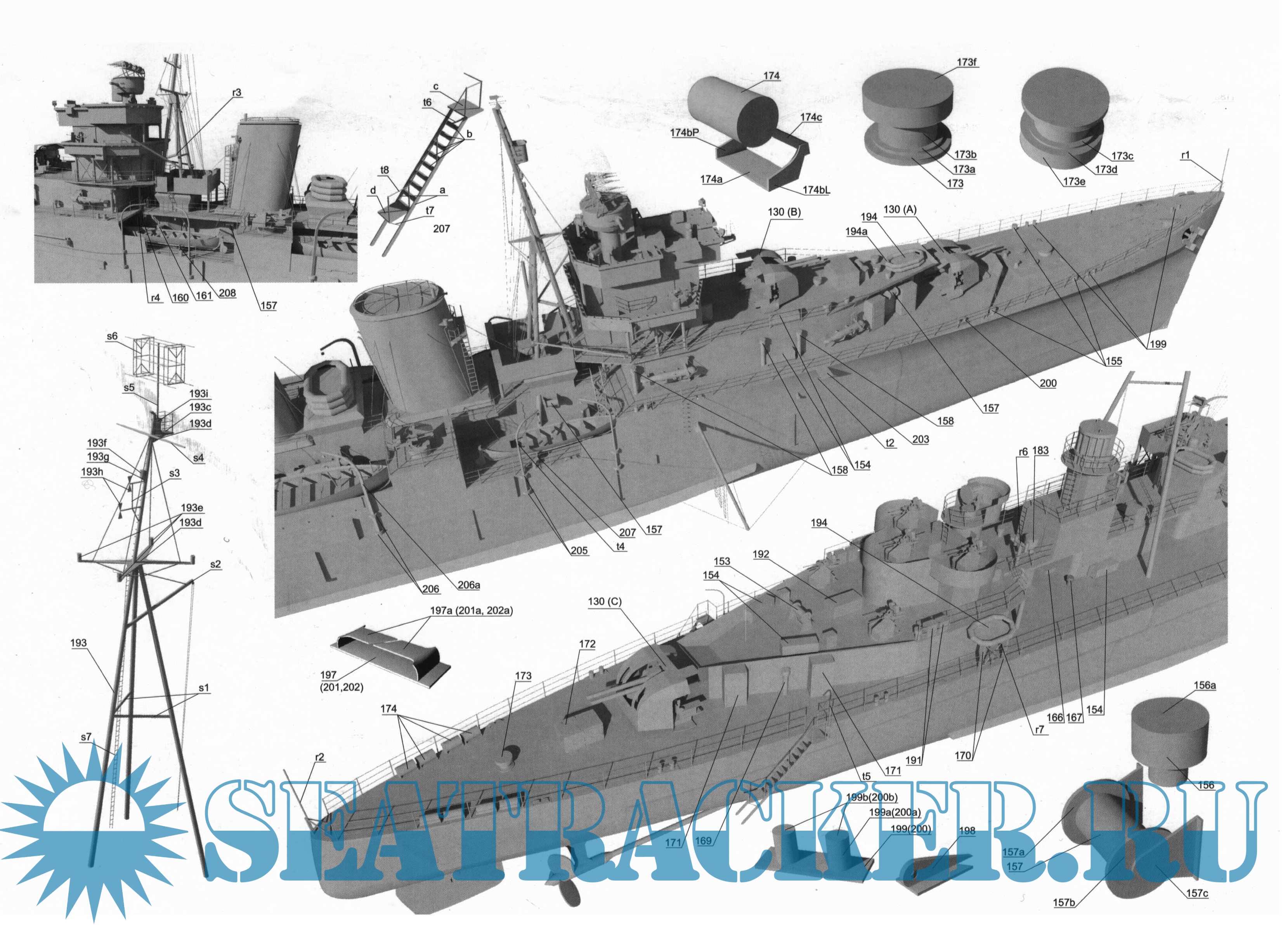 24 листа цветных выкроек и инструкций для изготовления британского крейсера HMS Colombo в масштабе 1:200
