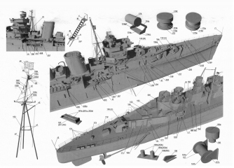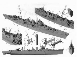 Описание: 24 листа цветных выкроек и инструкций для изготовления британского крейсера HMS Colombo в масштабе 1:200
