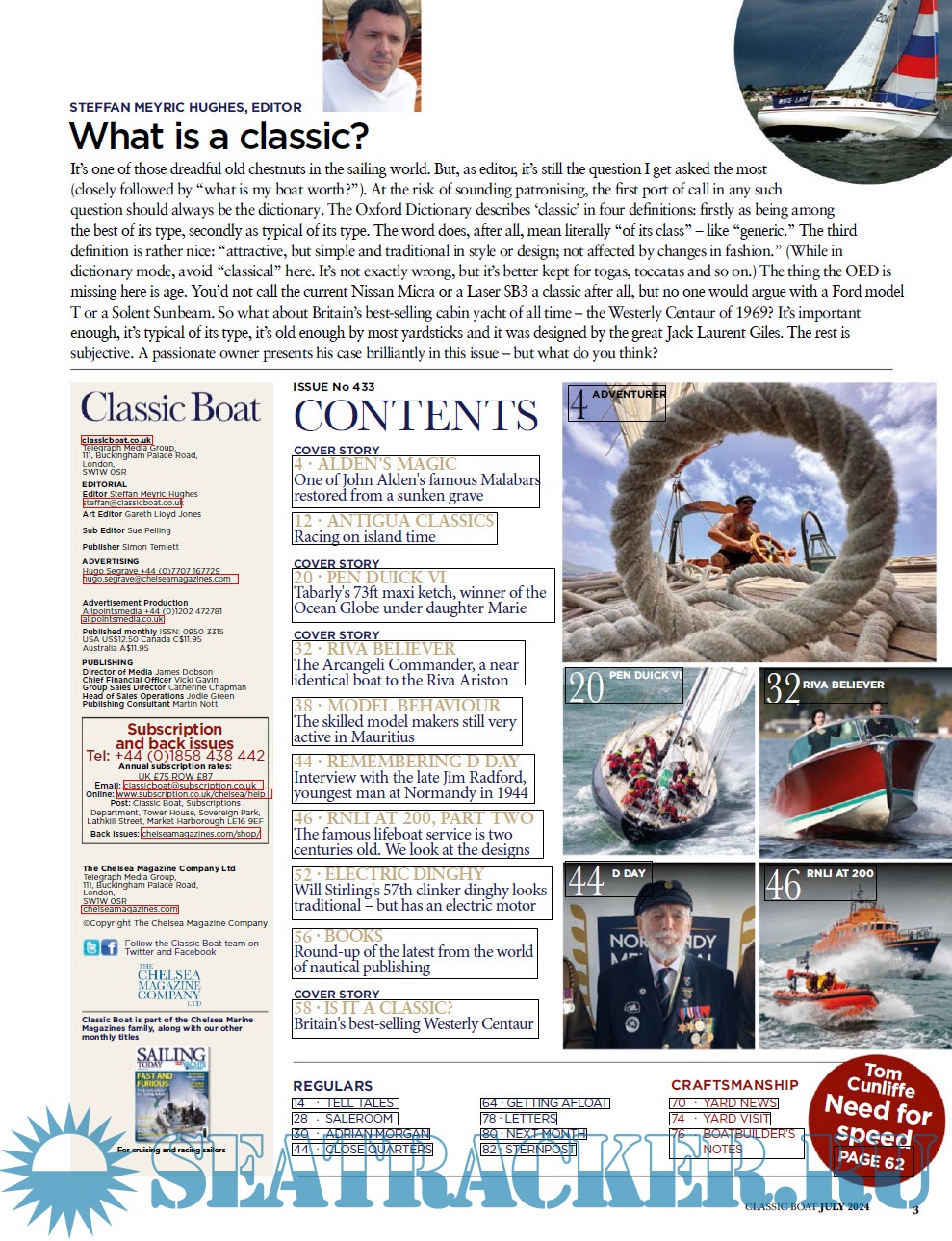 Description: Classic Boat is the magazine for the world’s most beautiful boats. Packed with stunning images, we have the inside stories of the great classic yachts and motorboats afloat today, as well as fascinating tales from yesteryear and the latest from the wooden boat building scene around the world.