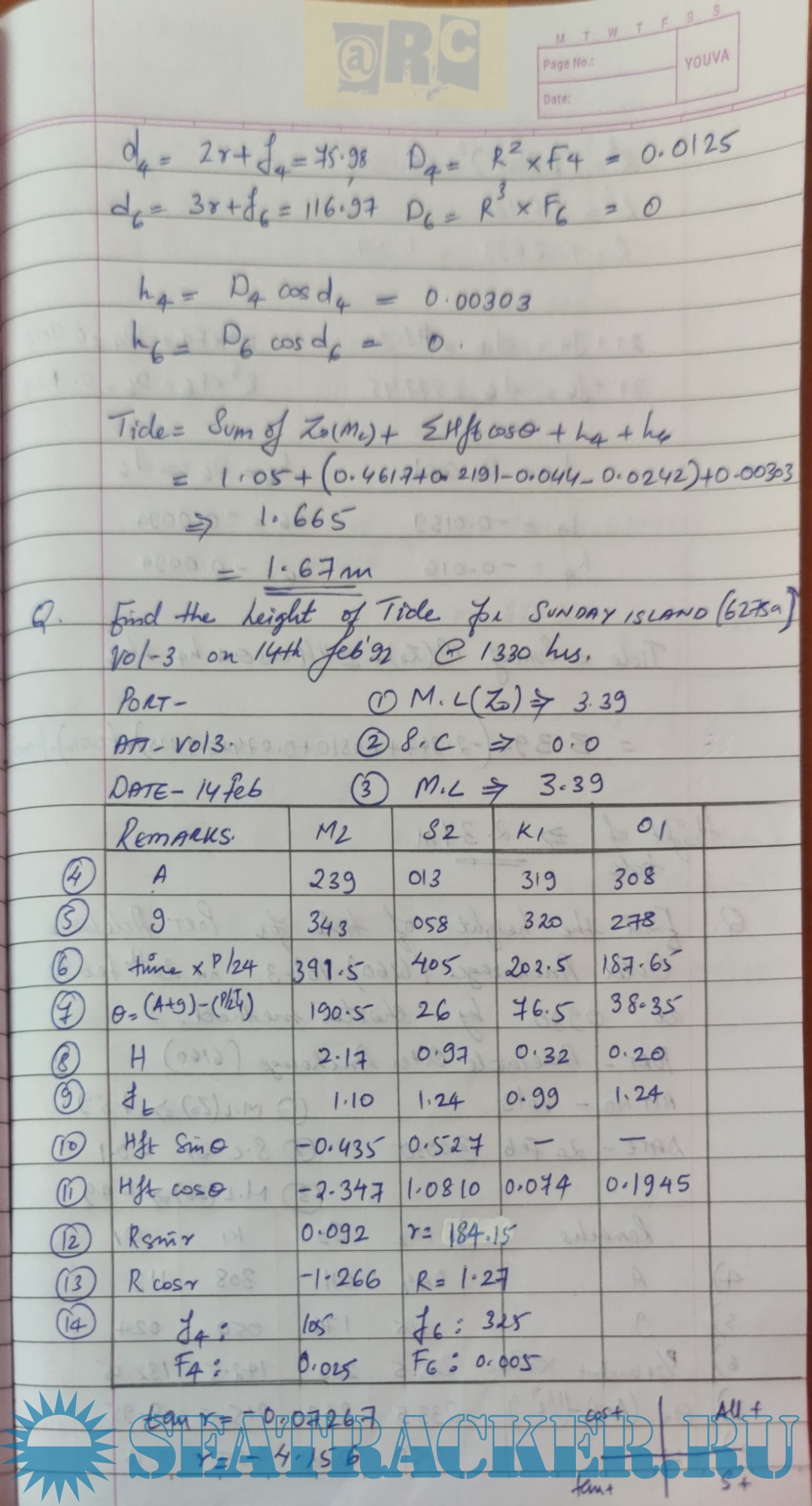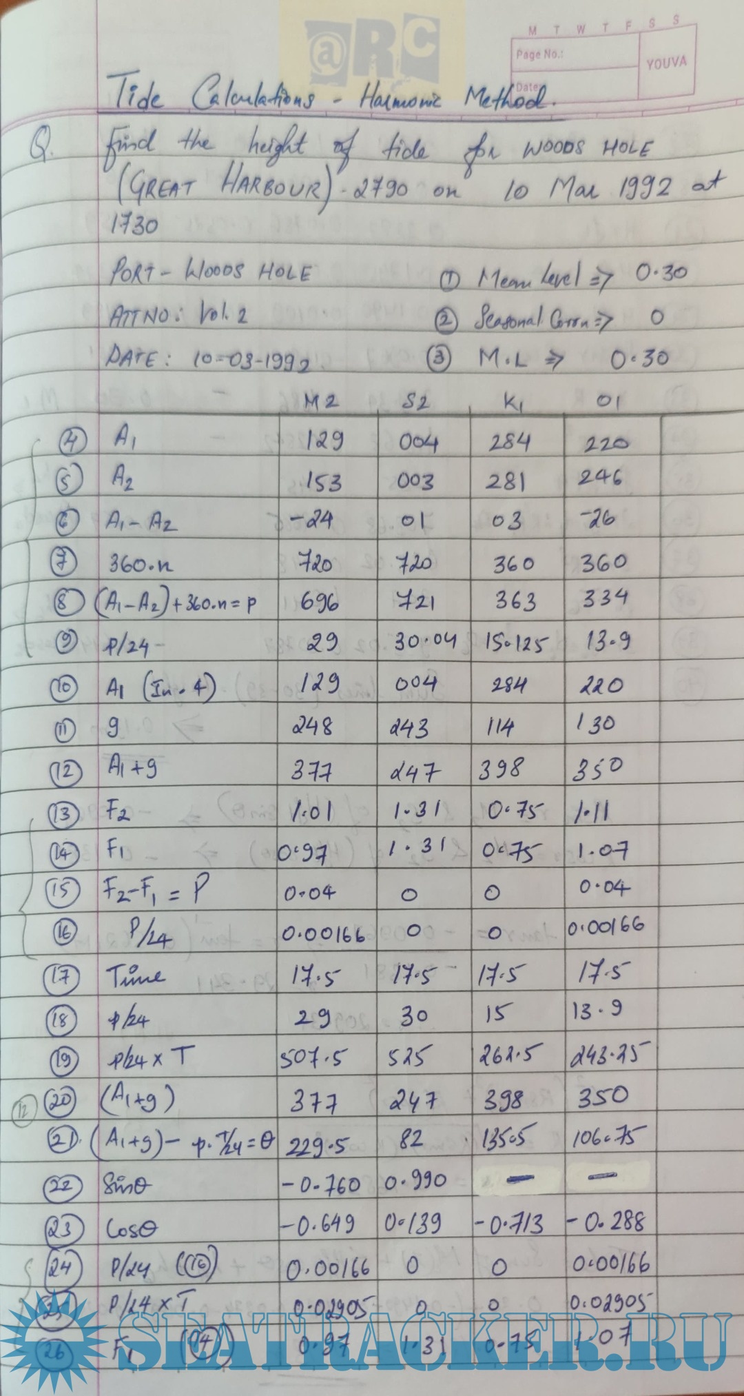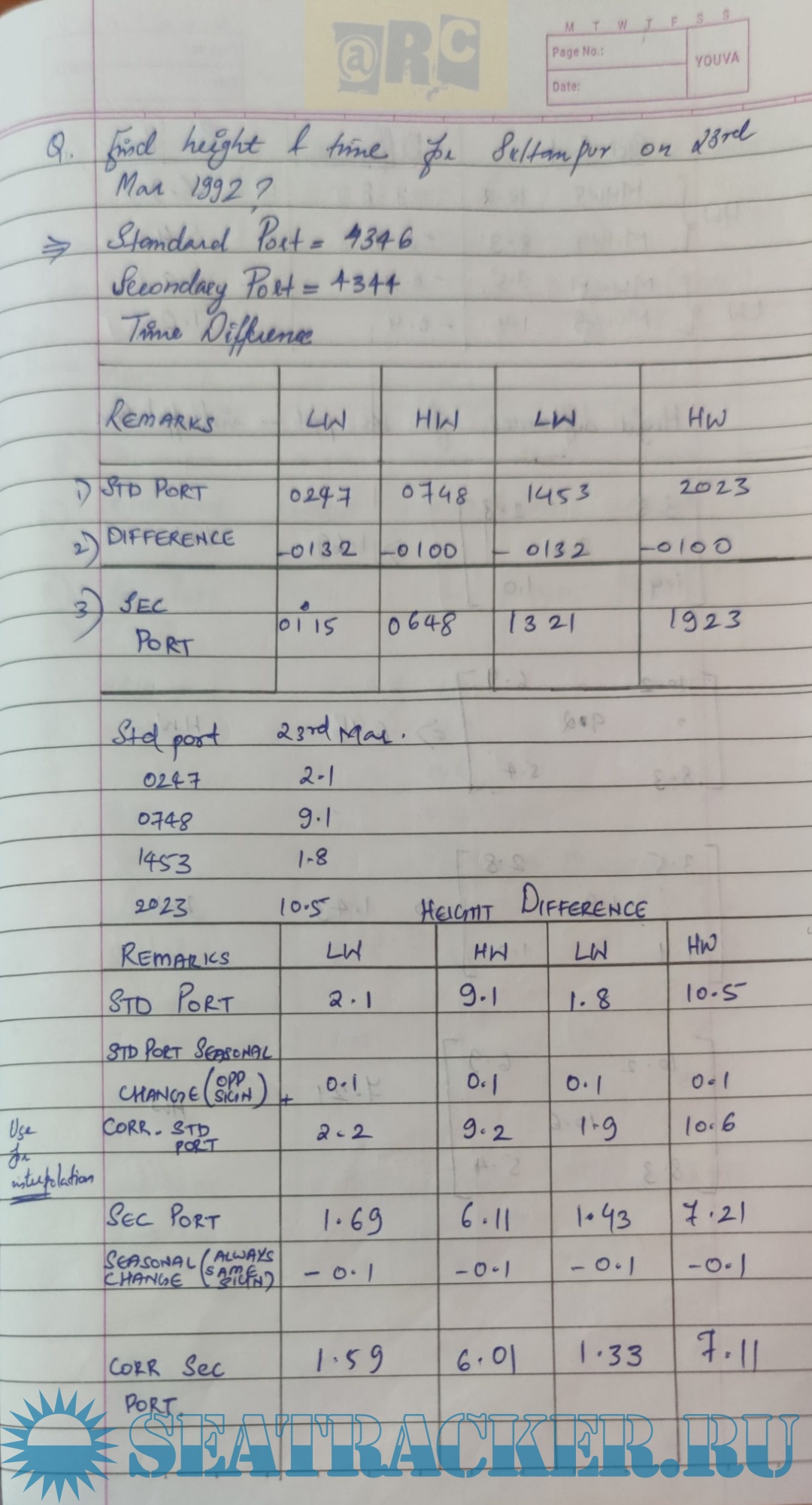 Description: Paper: Metrology Solved Numericals for Tide Calculation (Handwritten Notes)from Past Question Papers of Mercantile Marine Department (MMD), India Examinations for Phase I (Chief Mate F.G.)