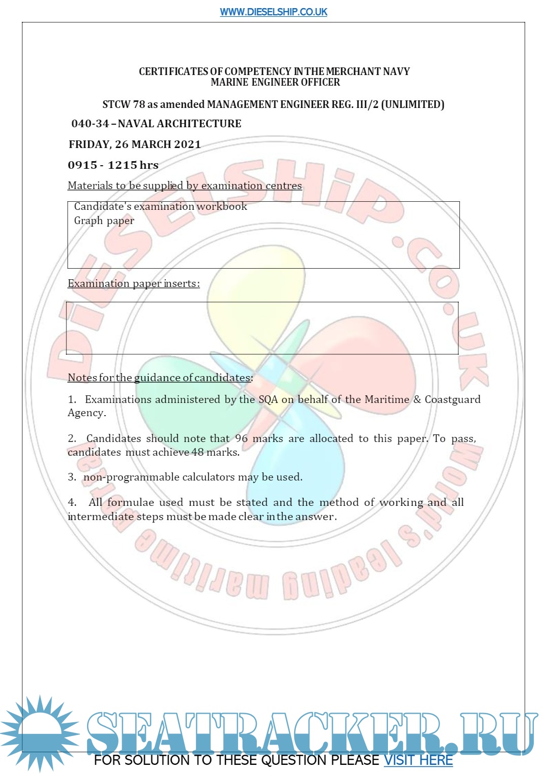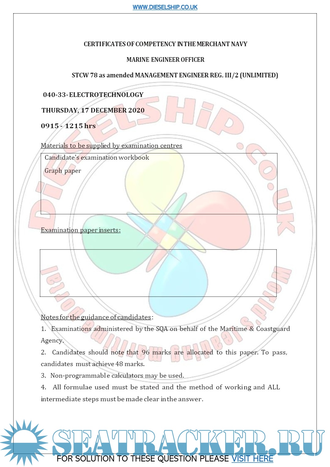 Question Paper (updated March 2023) for M.E.O. Class IV Examinations, India - D.G. Shipping, India…