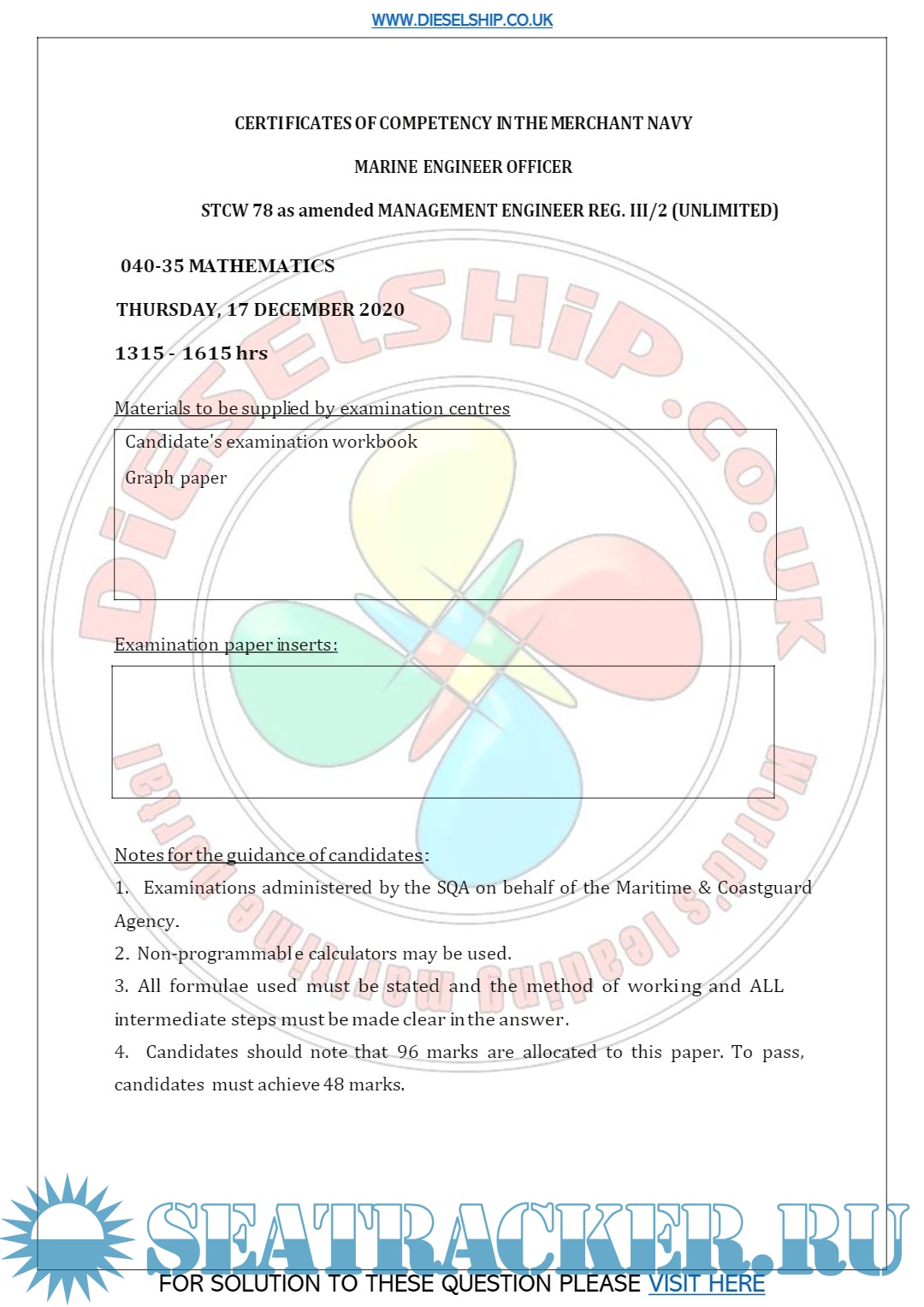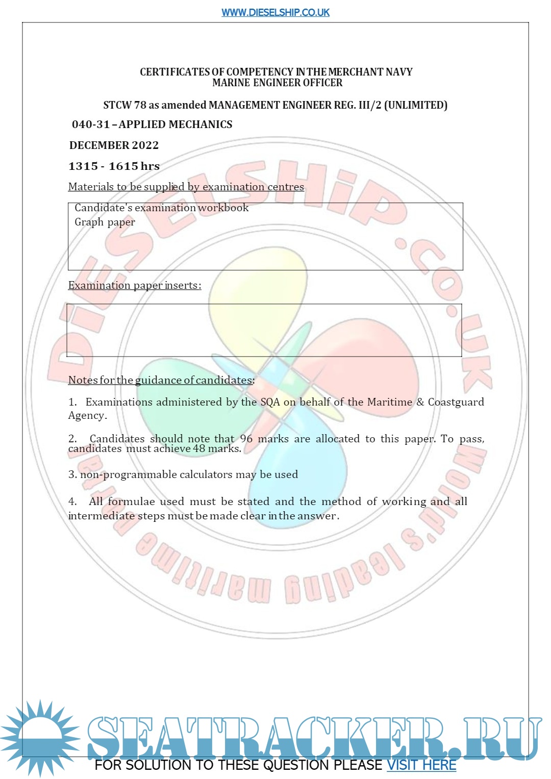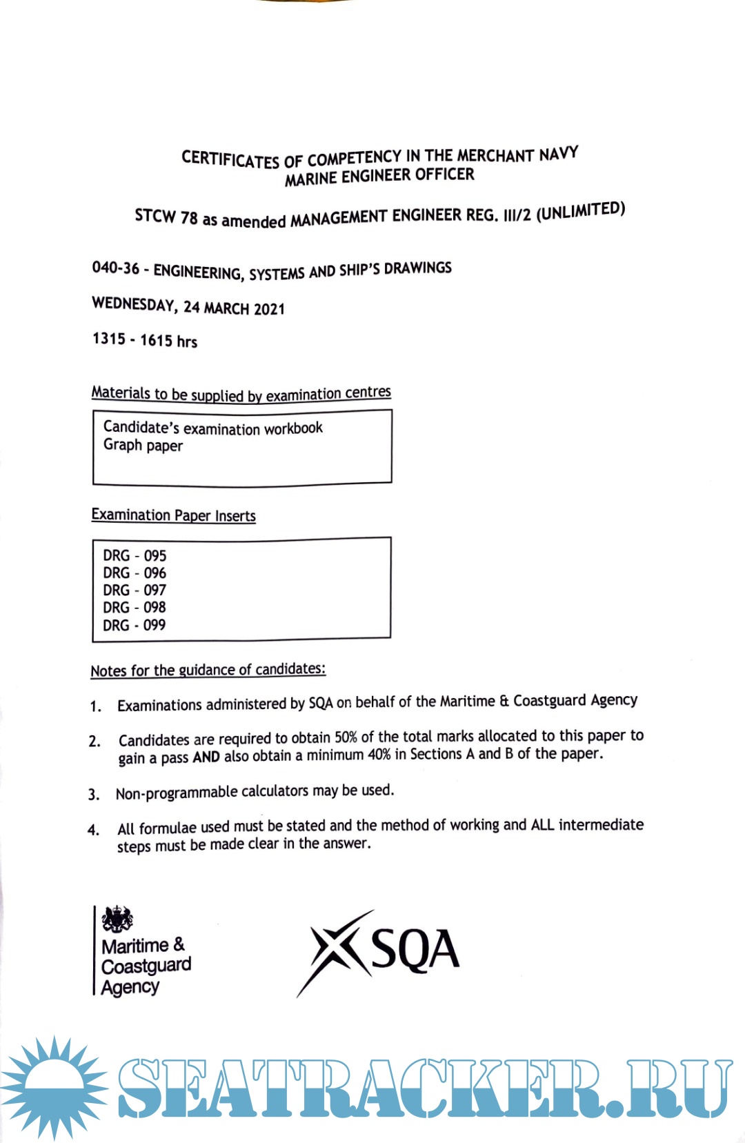 Additional info: MCA Management Level (STCW III/2) Engineering Written Exams are for seafarers to achieve the Second Engineer and Chief Engineer certificate of competency. The Scottish Qualification Authority (SQA) offers examination services on behalf of the UK Maritime and Coastguard Agency (MCA).