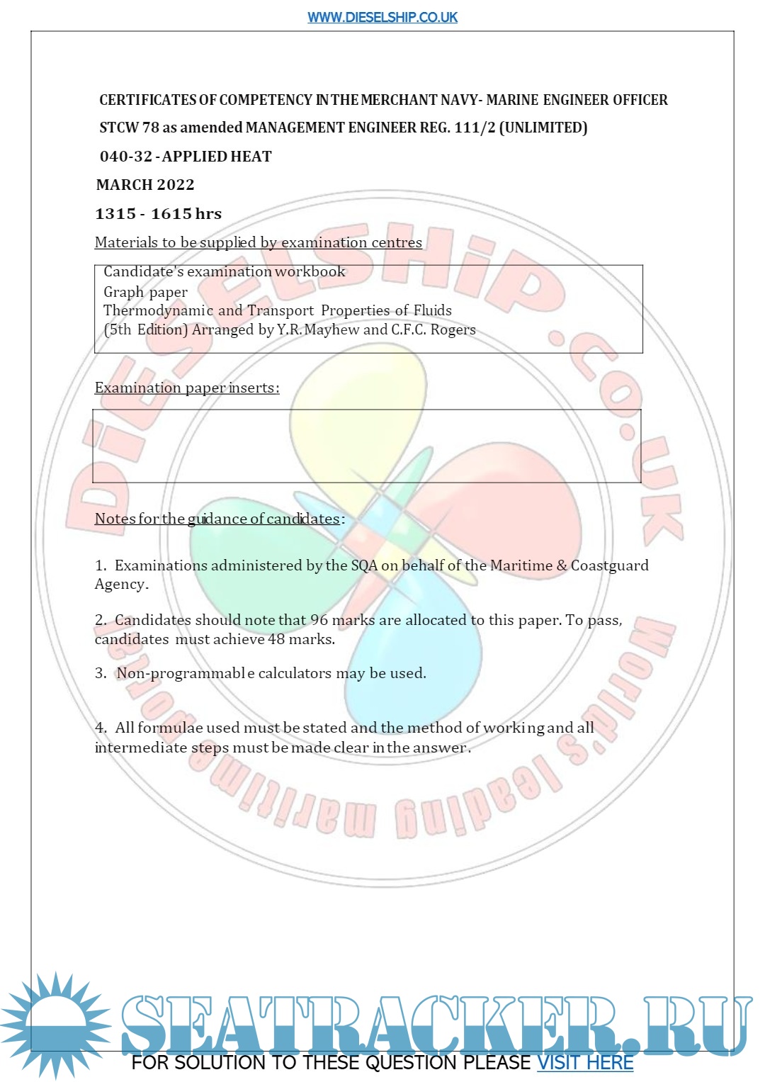 Question Paper Set for Marine Engineering Officer (M.E.O.) Class IV (May 2023) Examinations, India…