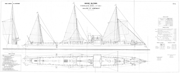 Архивные чертежи французского миноносца DRAGONNE 1885 год - нет данных [1885, TIFF]