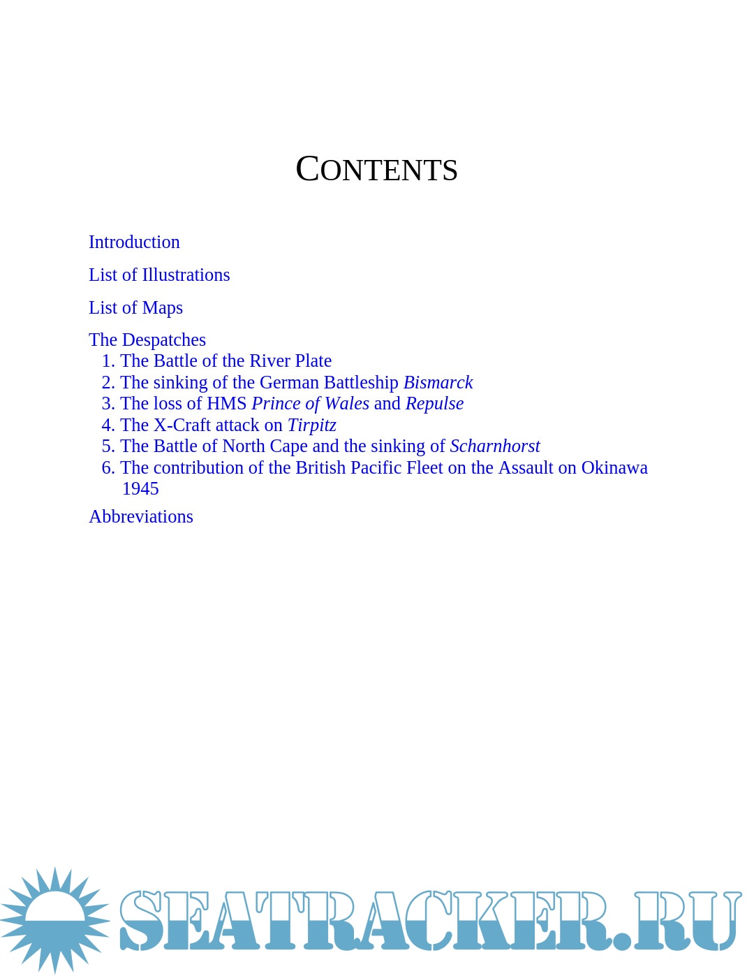 Year: 2014 Language: English Author: Grehan J. Genre: History Publisher: Pen and Sword Maritime ISBN: 978 1 78346 204 9, 9781473837355 Format: PDF/EPUB Quality: eBook Pages count: 281 Description: Dispatches in this volume include those relating to the sinking of the German battleship Graf Spee in the Battle of the River Plate in 1939, the loss of the battleships HMS Prince of Wales and HMS Repulse in the Far East, the sinking of the German battle cruiser Scharnhorst in 1943, the attack on Tirpitz by midget submarines, the contribution by British Pacific Fleet to the assault on Okinawa in 1945 (which included four Royal Navy battleships), and the sinking of Bismarck in 1941. This unique collection of original documents will prove to be an invaluable resource for historians, students and all those interested in what was one of the most significant periods in British military history.