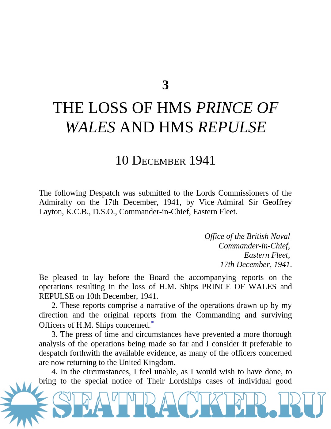 Description: Dispatches in this volume include those relating to the sinking of the German battleship Graf Spee in the Battle of the River Plate in 1939, the loss of the battleships HMS Prince of Wales and HMS Repulse in the Far East, the sinking of the German battle cruiser Scharnhorst in 1943, the attack on Tirpitz by midget submarines, the contribution by British Pacific Fleet to the assault on Okinawa in 1945 (which included four Royal Navy battleships), and the sinking of Bismarck in 1941.