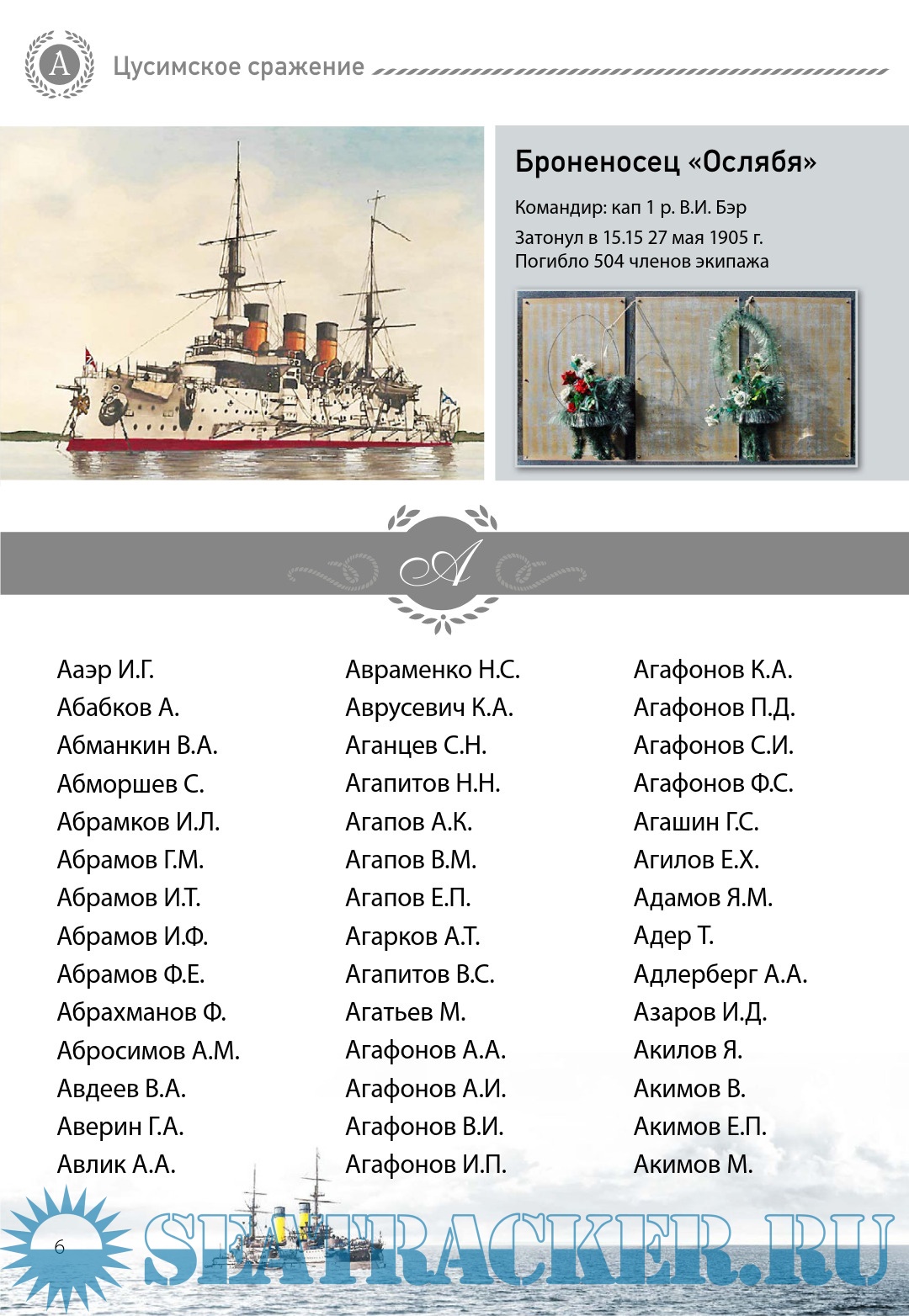 Впервые опубликован полный список моряков России, погибших в Цусимском морском сражении 14 (27) мая – 15 (28) мая 1905 года.