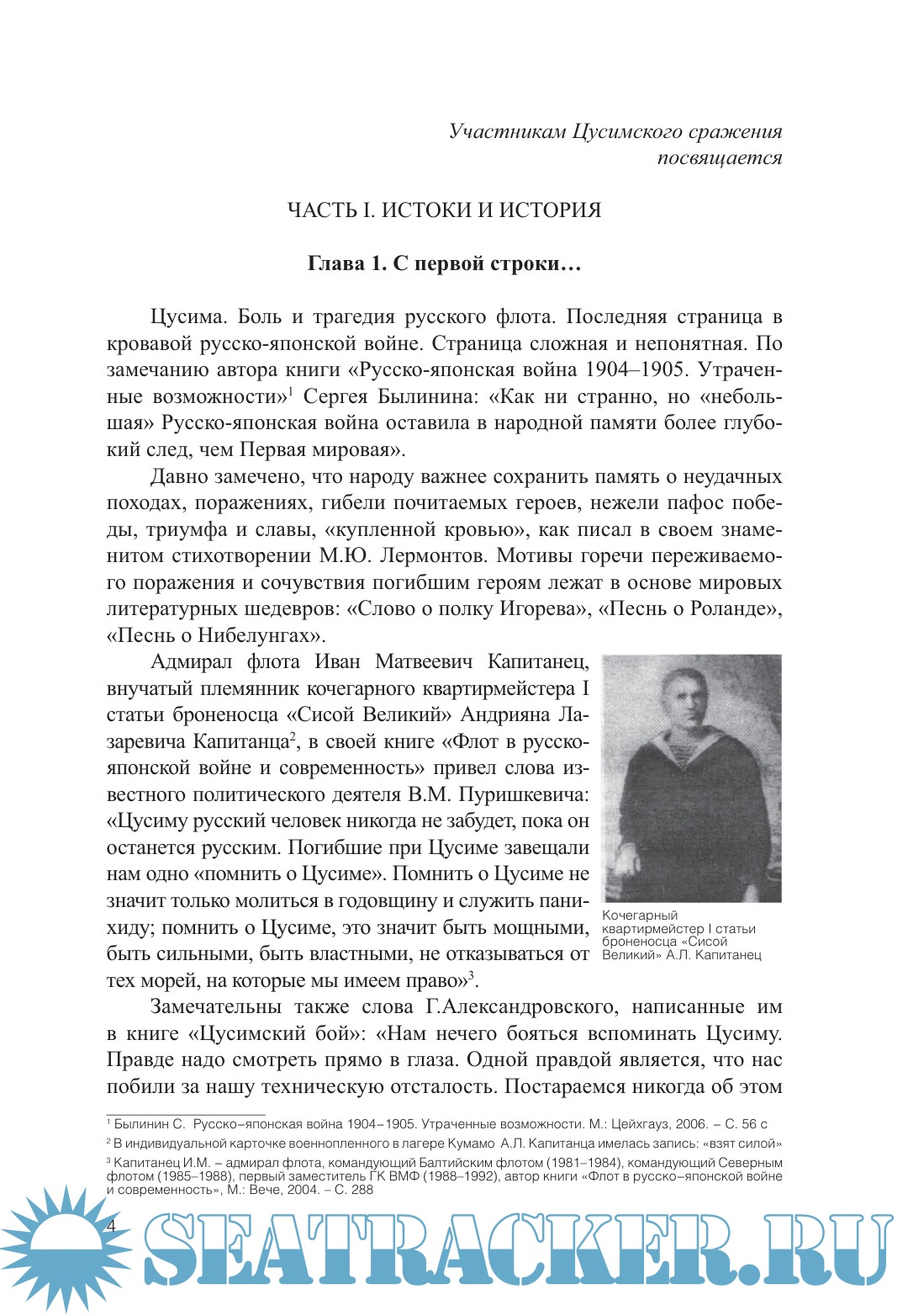 Описание: Книга написана прямыми потомками последнего командира эскадренного броненосца «Сисой Великий». Создание книги основано на архивных документах, неопубликованных воспоминаниях и служебных рапортах офицеров и матросов броненосца, а также других участников Цусимского сражения. В доступном для читателя стиле описана подготовка 2-й эскадры Тихого океана, а также ее поход. Представлен полный список экипажа броненосца перед выходом из России. Очень доходчиво и интересно описано участие броненосца в Цусимском бою 14-15 мая 1905 года. В конце книги приведена дальнейшая судьба некоторых членов экипажа.