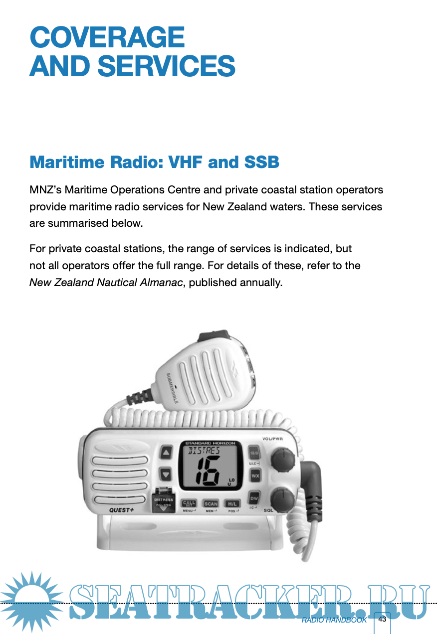 Year: 2023 Language: English Author: Maritime New Zealand Genre: Handbook Publisher: Maritime New Zealand Edition: 4th ISBN: 0-478-18816-1 Format: PDF Quality: eBook Pages count: 72 Description: This handbook is a guide for operators of coastal and vessel* radio stations, including operators of VHF (very high frequency) and SSB (single sideband, also called MF/HF) radios. It provides information about: how search and rescue is managed in New Zealand distress, urgency and safety calls, including appropriate use of cellphones radio-telephone procedures coverage useful contacts and terms. Additional info: Older version 2016 here: https://seatracker.info/viewtopic.php?t=34480